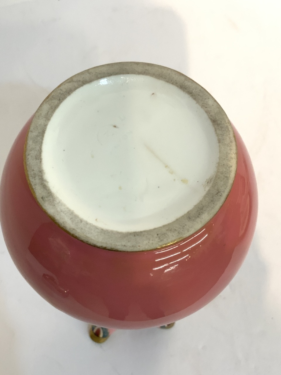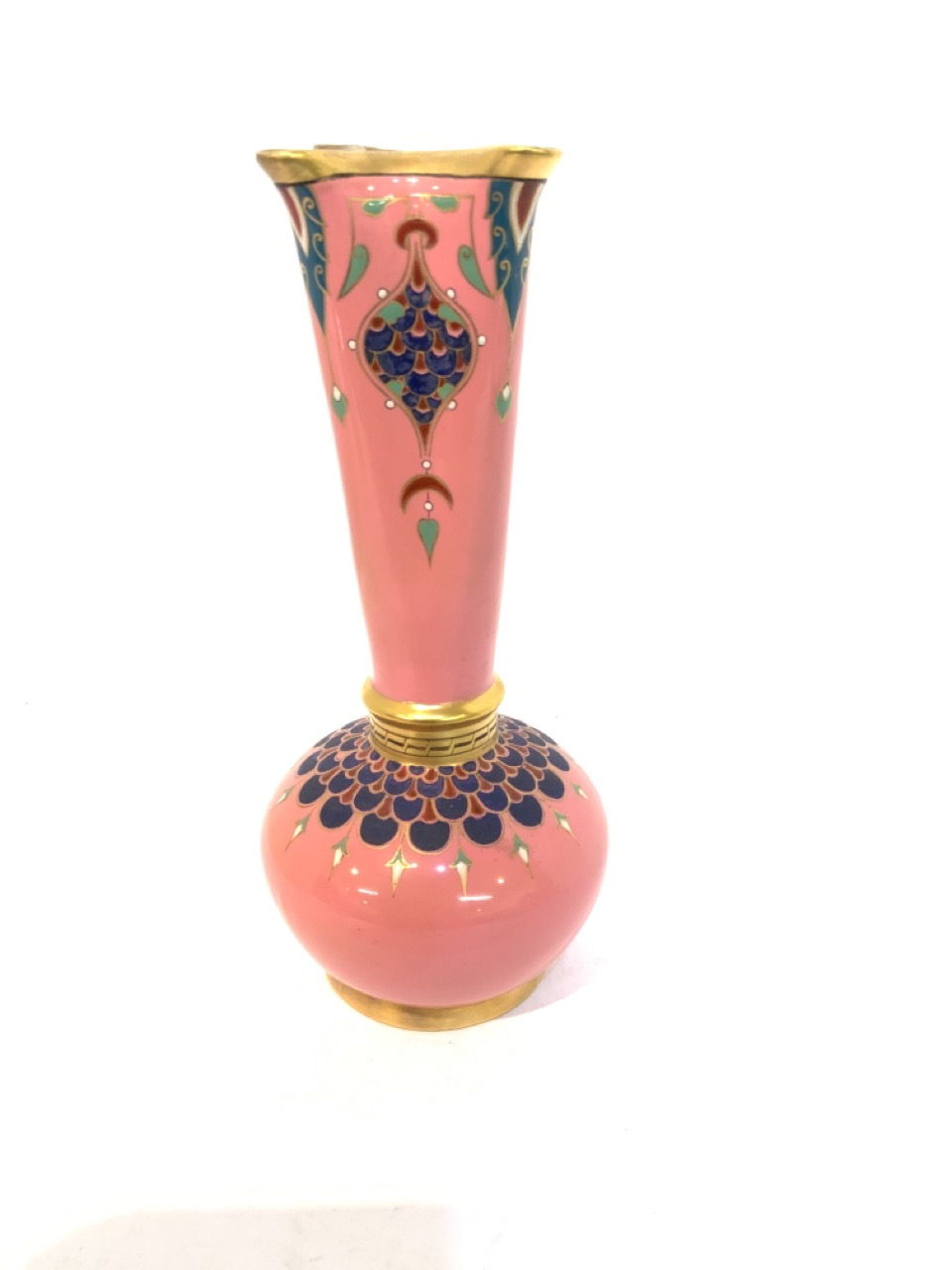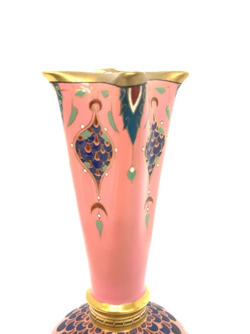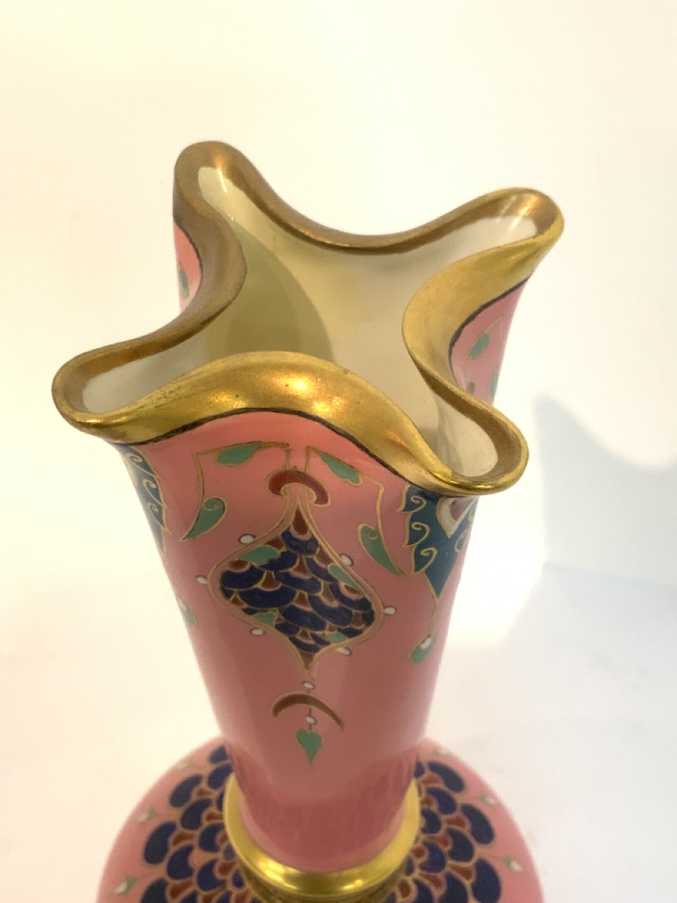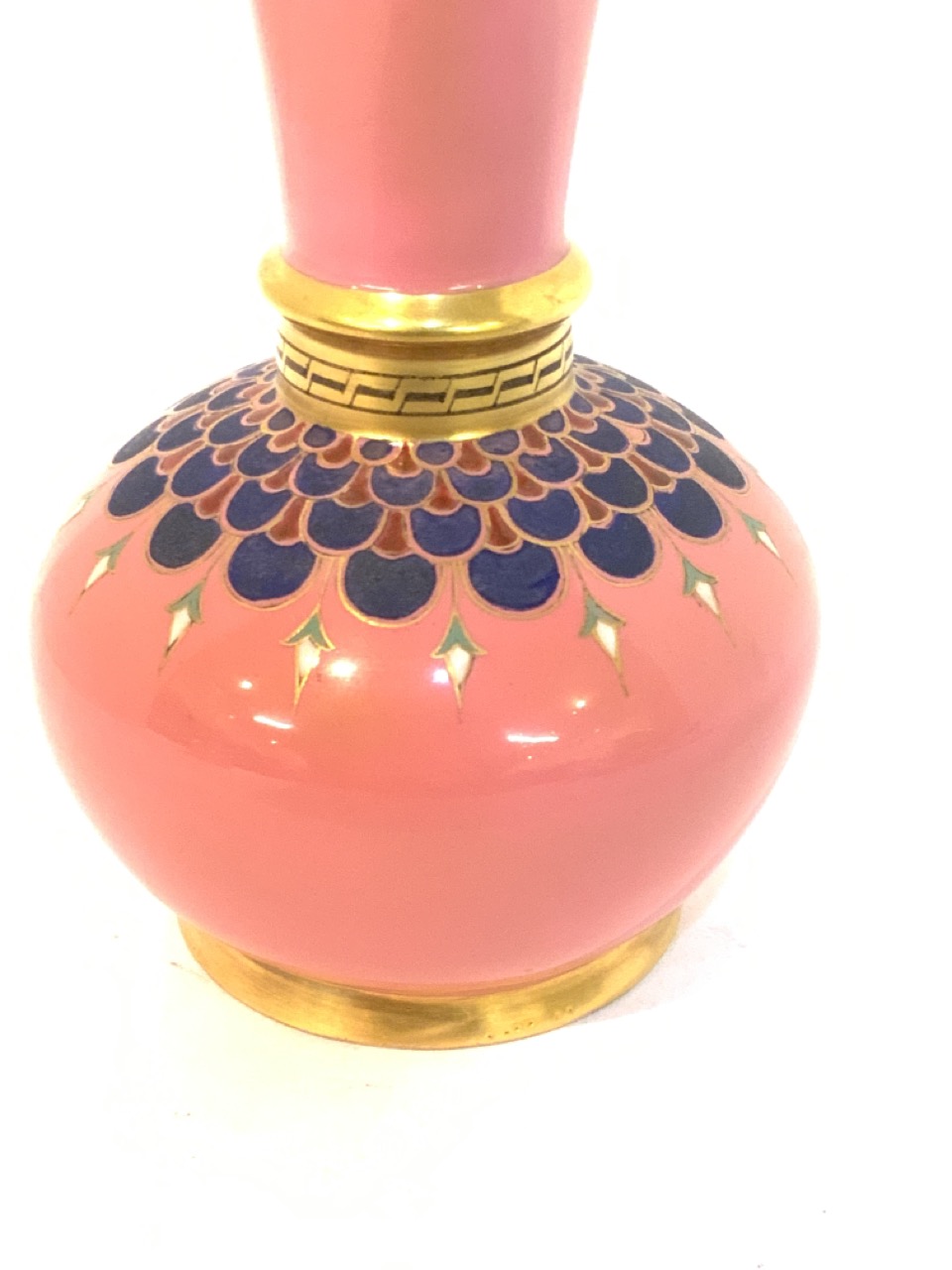 Rare c.1870 Minton bone china vase with a Chinese or Japanese style decoration with enamel in imitation of cloisonne.