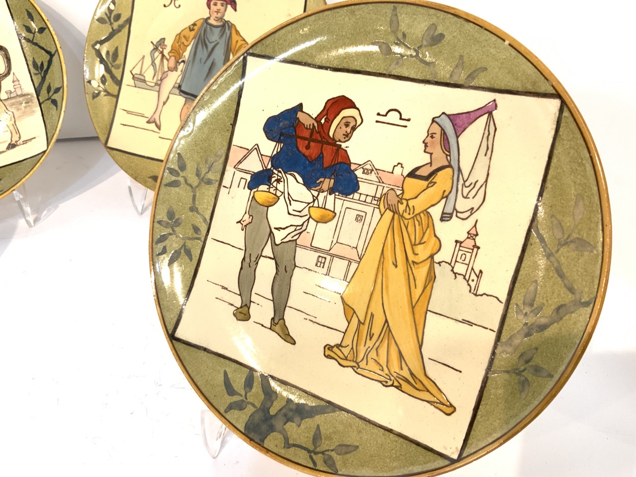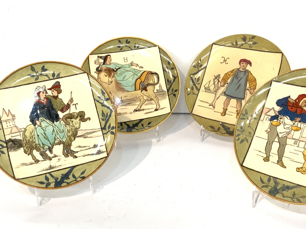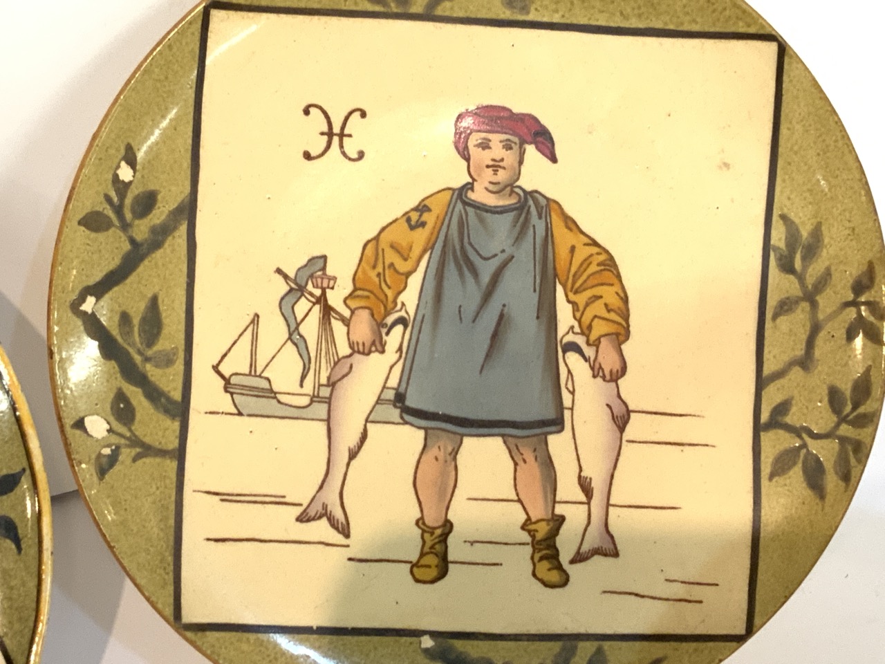 Taurus plate has small chip underside and Pisces plate has a few flakes of paint loss. Please see photograph preview or call.
