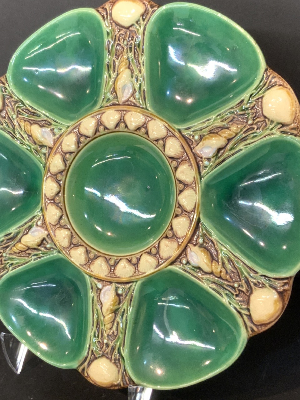 Minton green and yellow Majolica oyster plate.