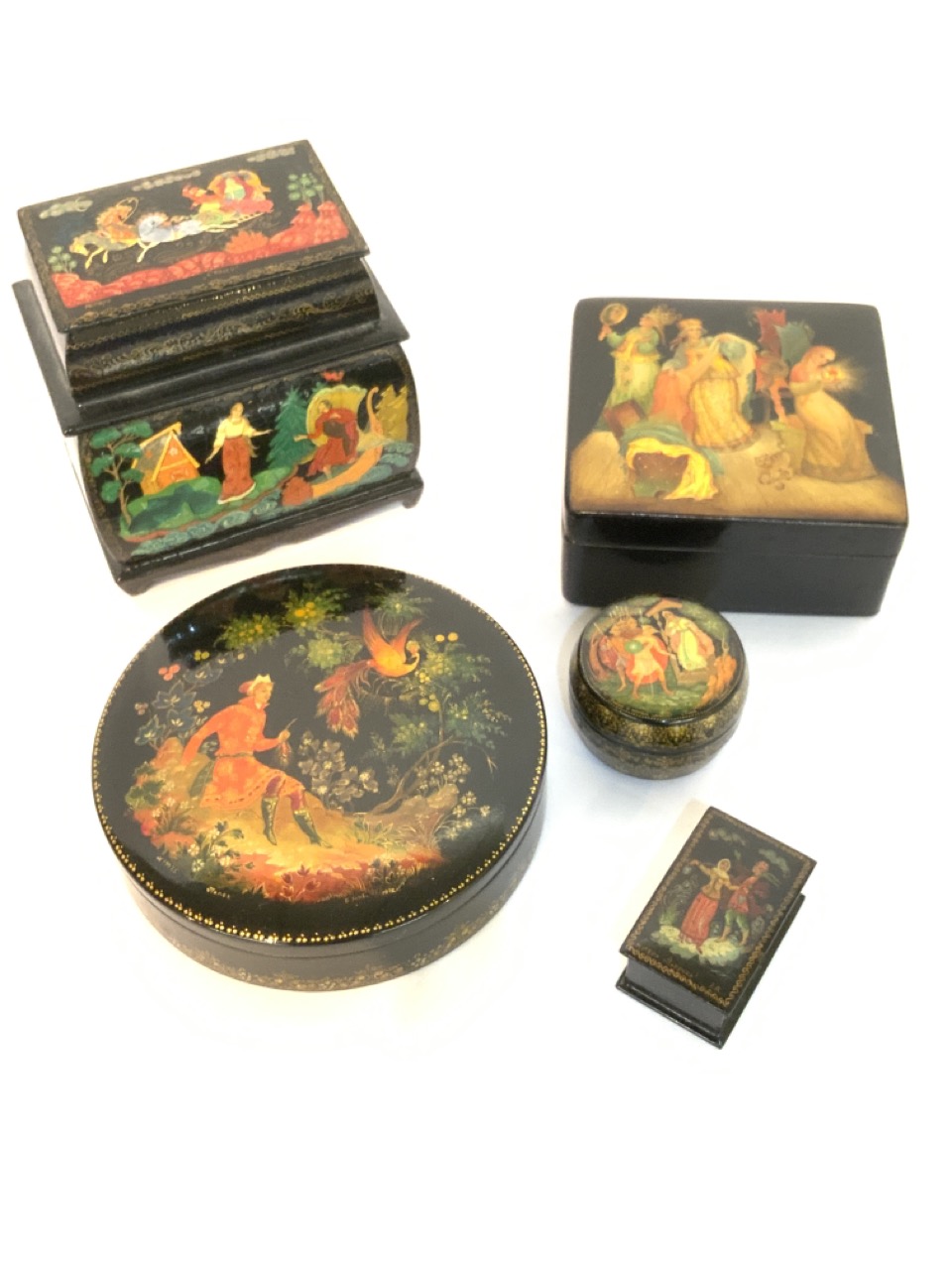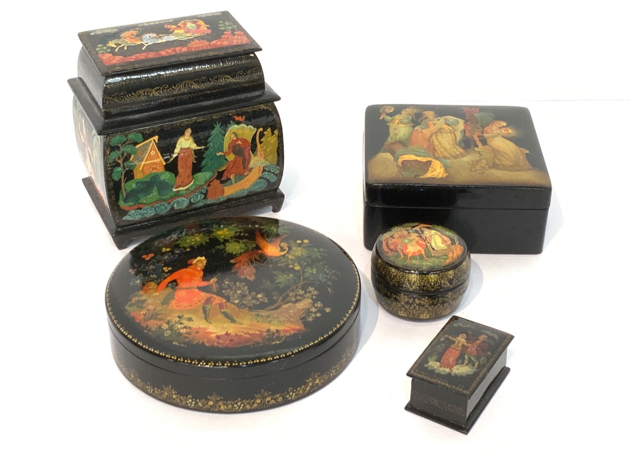 Five (5) Russian Lacquerware Boxes.
