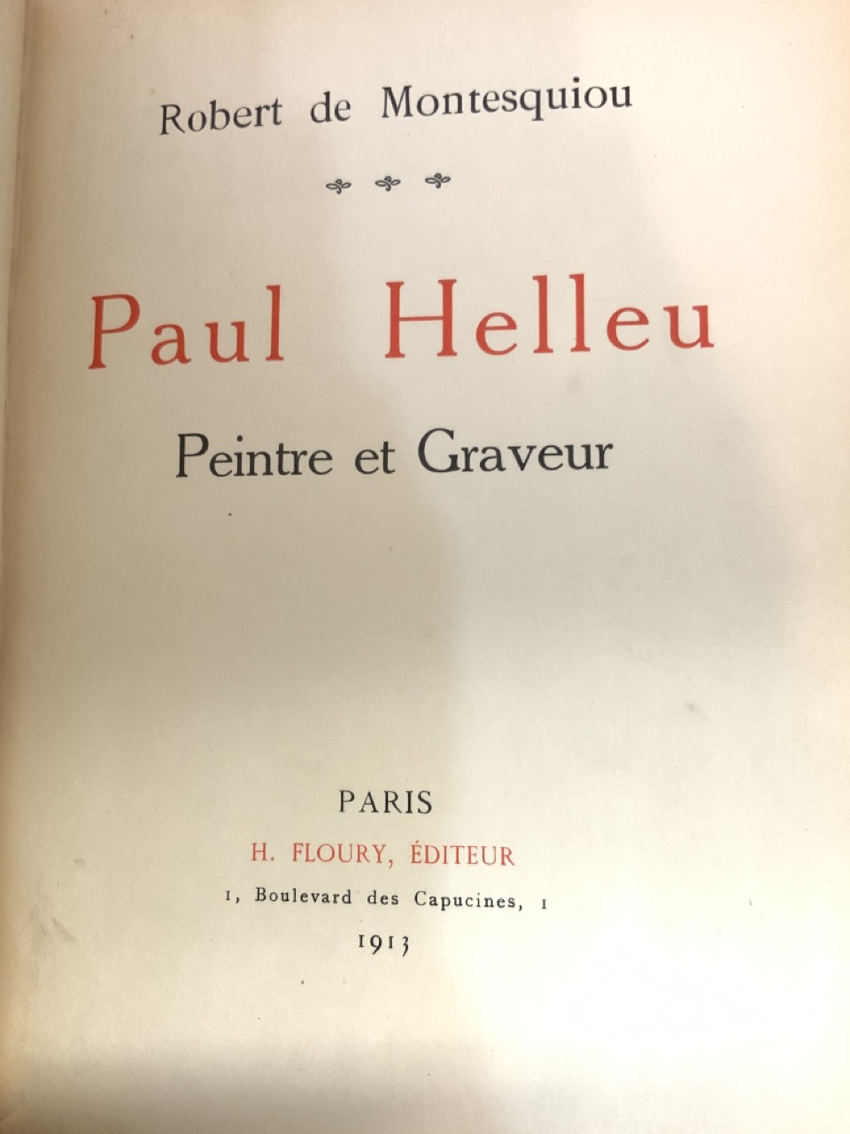 Montesquiou, Robert de. Paul Helleu. 100 Plates, limited edition. H. Floruy, 1913. Spine cover detached. Overall good interior.