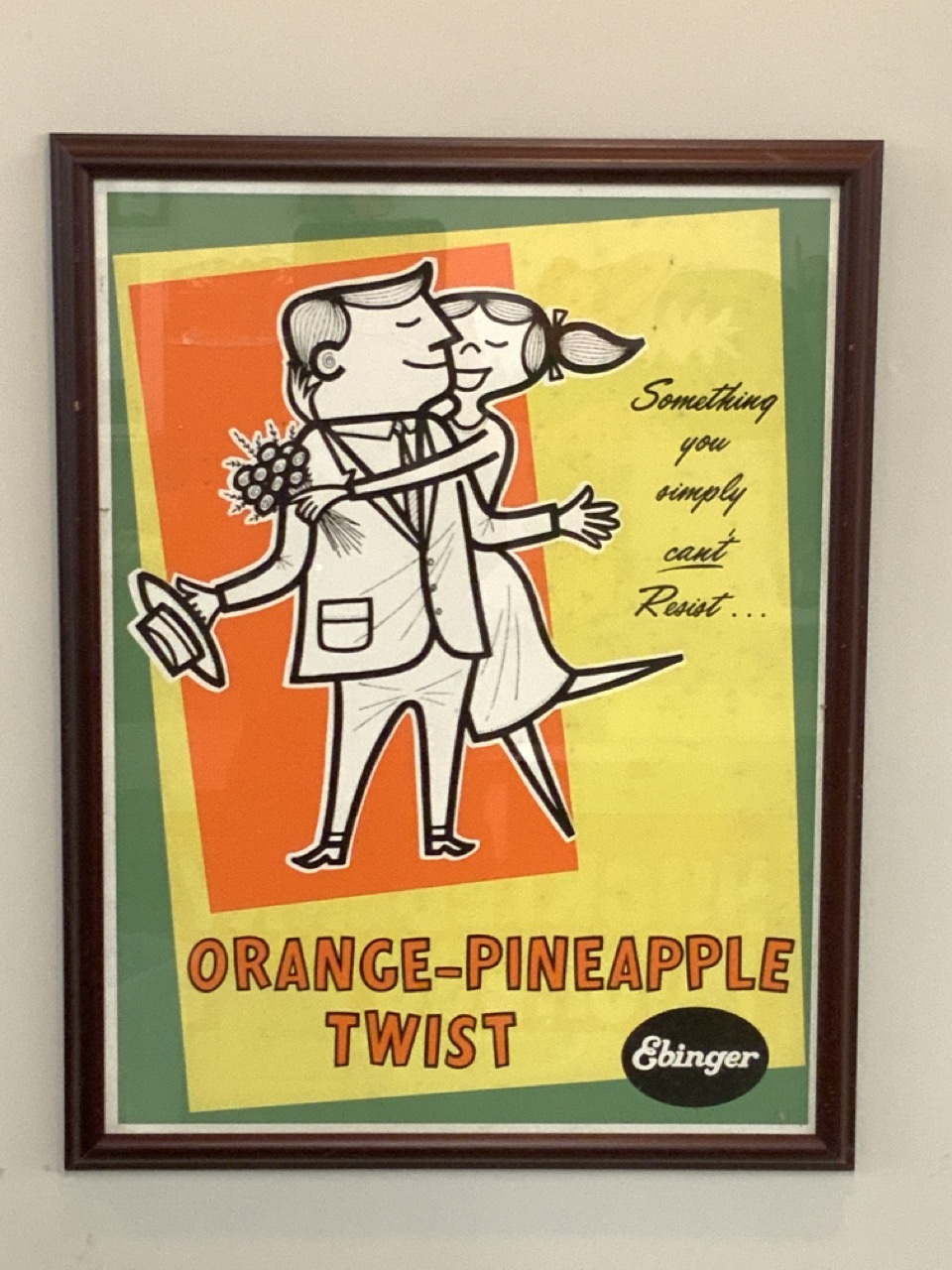 Ebinger's Orange Pineapple Twist Advertising Poster. Brooklyn, NY Bakery mid 20th century.