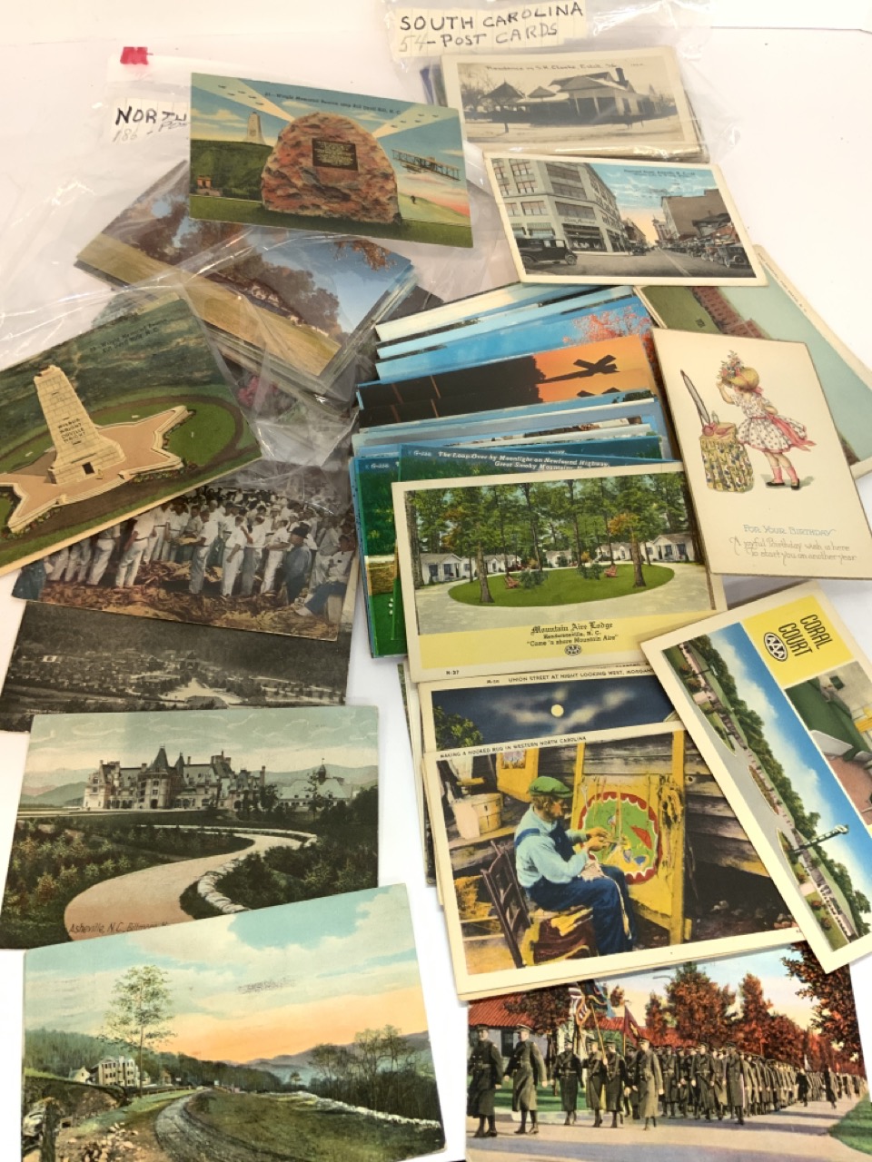 North Carolina (186) and South Carolina (54) assorted postcards.