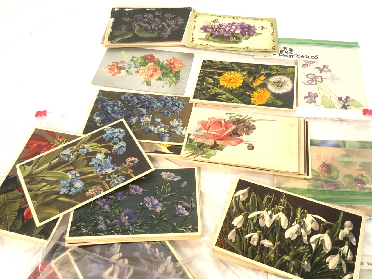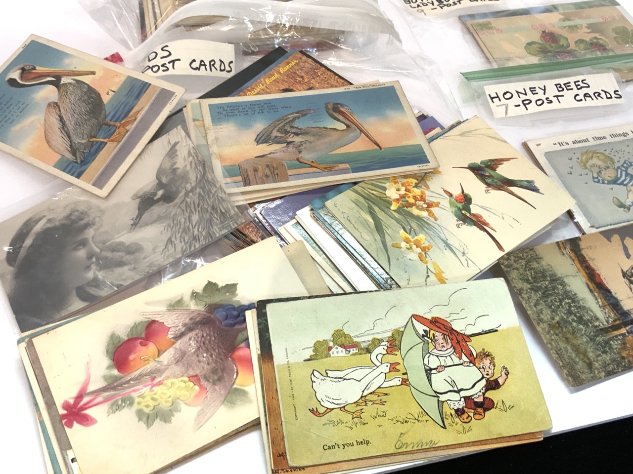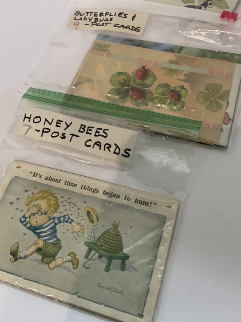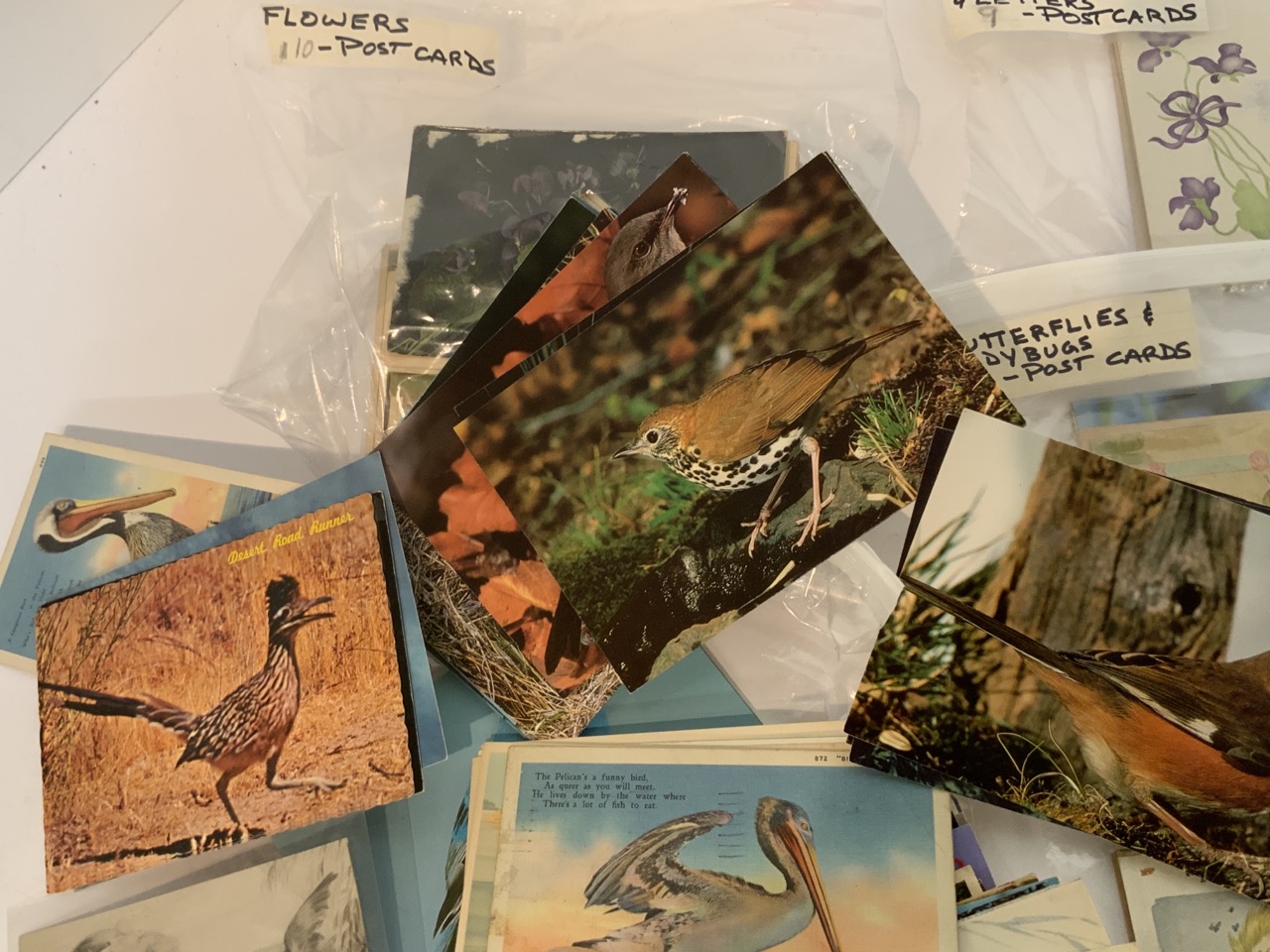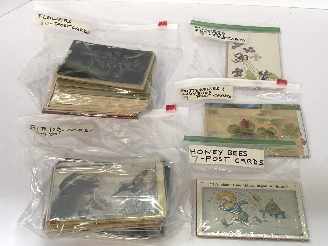 Collection of postcards including Birds, Flowers, Butterflies, Lady Bugs and Honeybees.