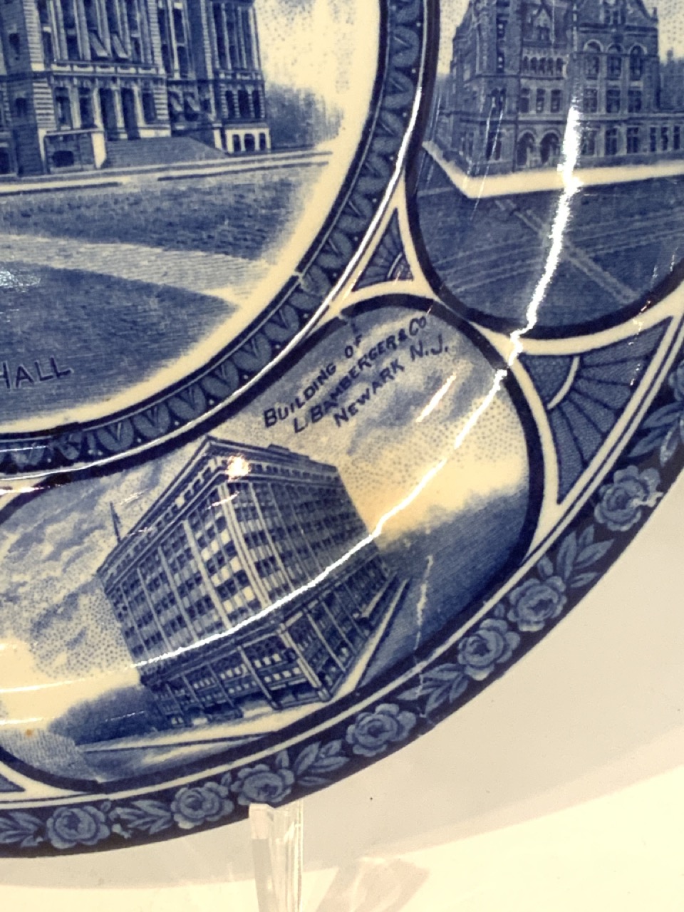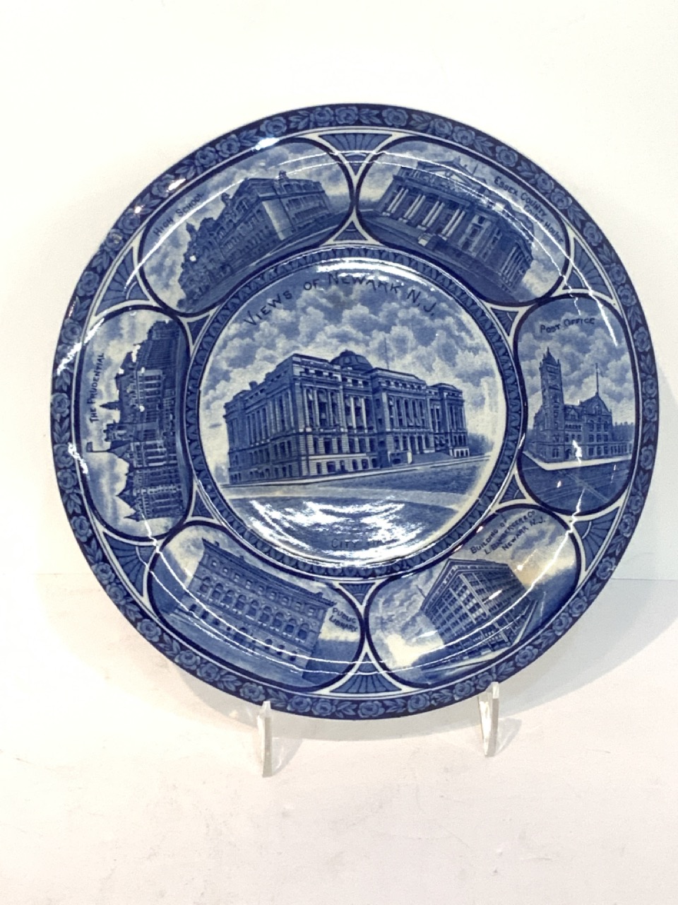 Newark, New Jersey English Staffordshire Blue Transferware Plate.