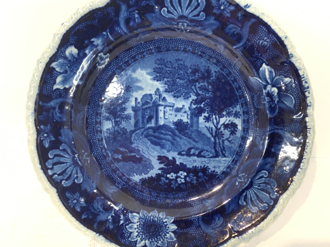 Blue transfwerware plate.
