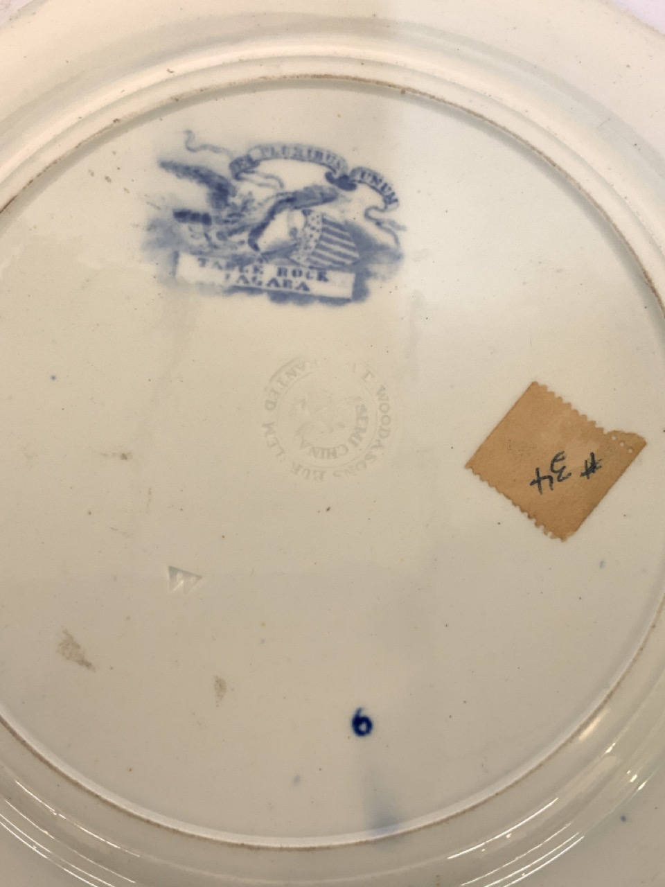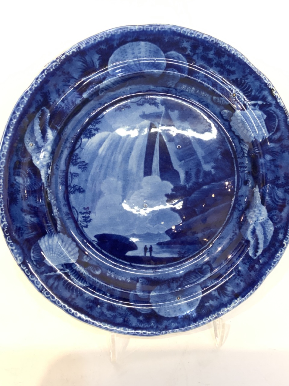 Historical blue Staffordshire "Niagara Falls" flow blue dinner plate. Good condition.