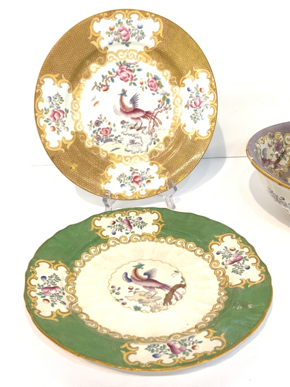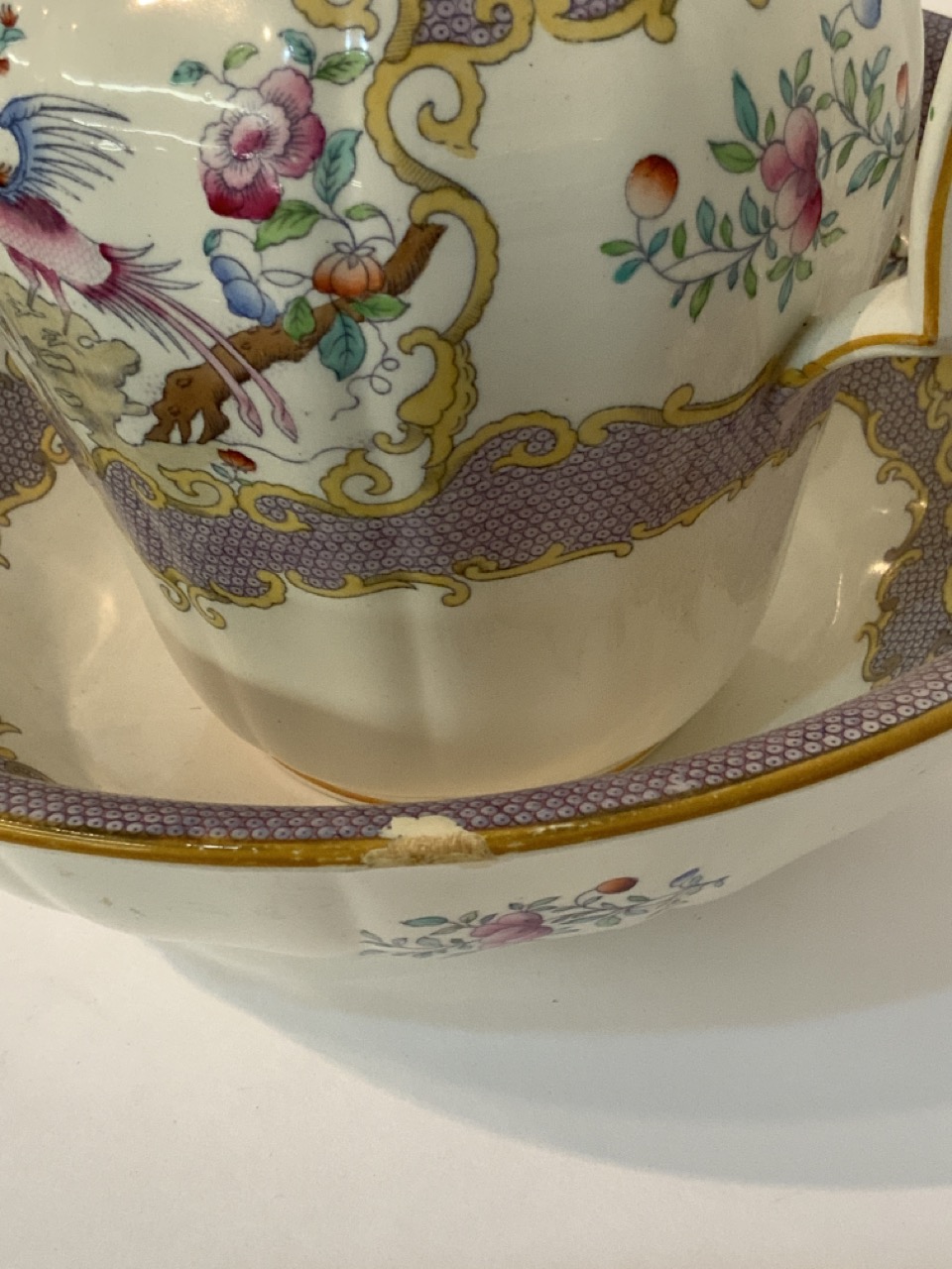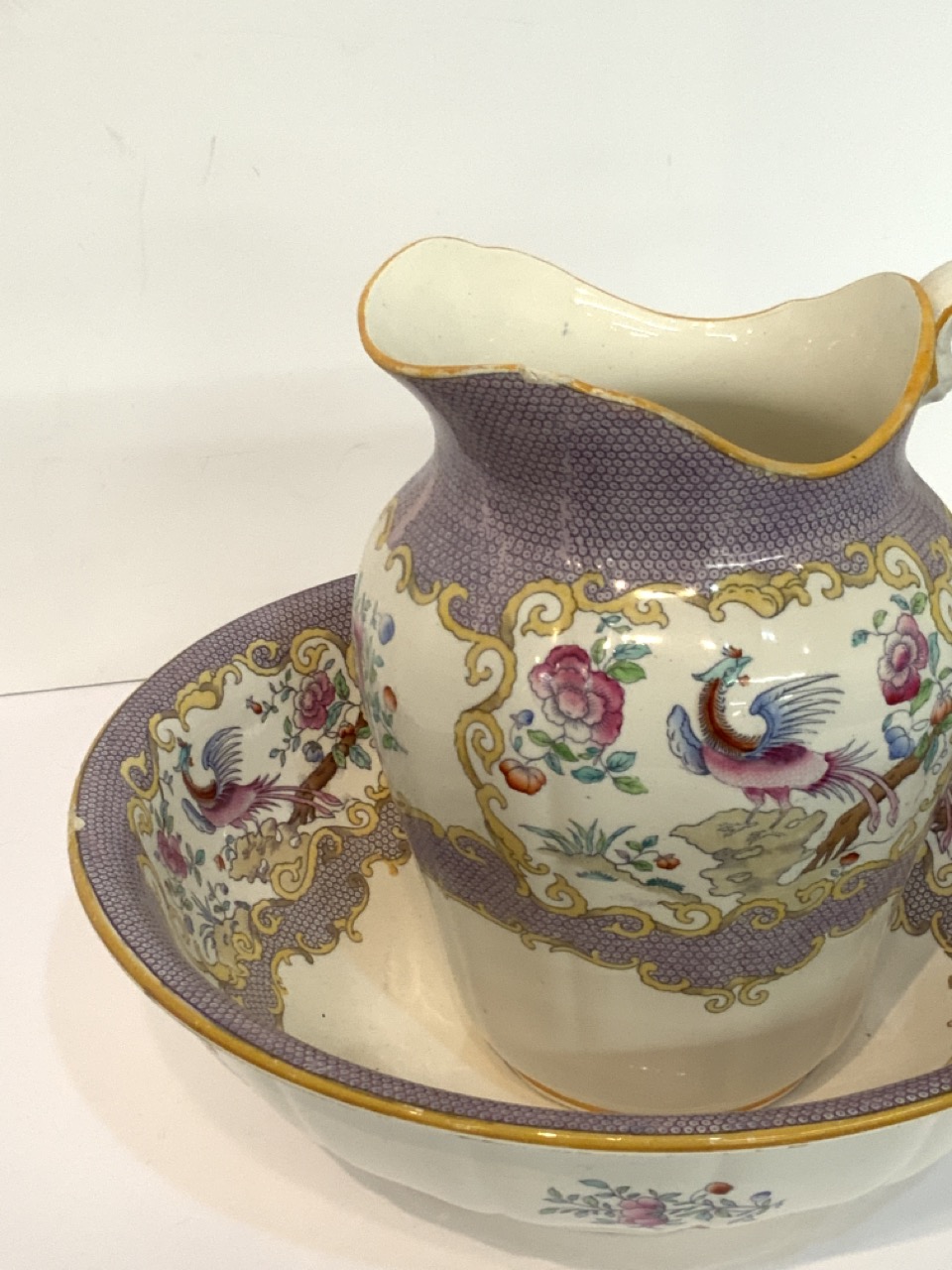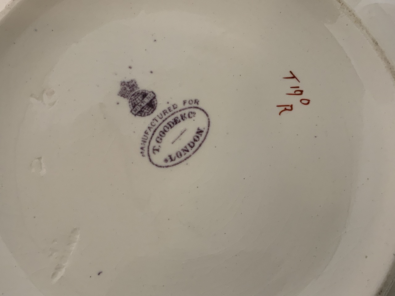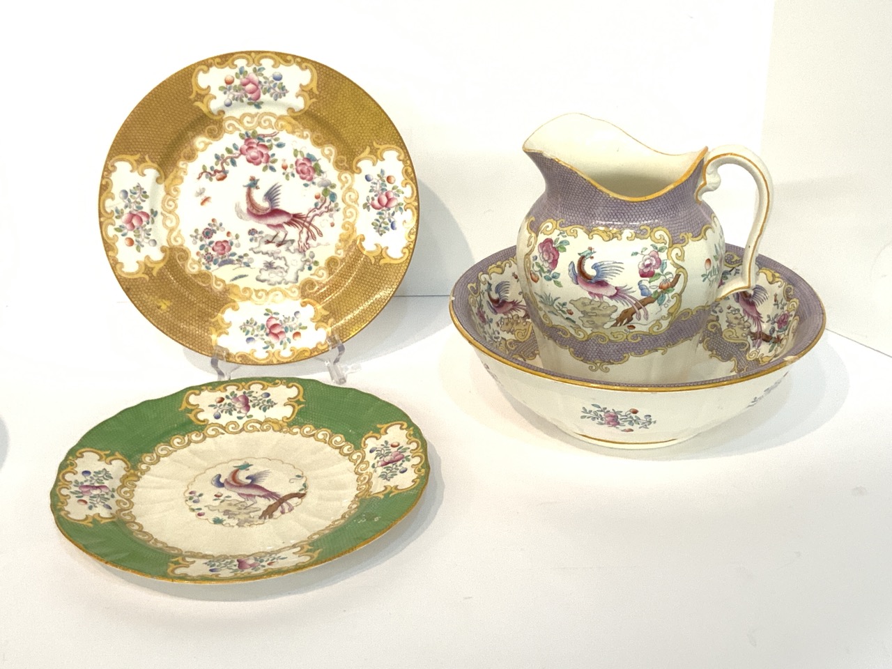 Condition: Each plate has a hairline crack, pitcher and bowl has chips and repairs. Please see photograph preview or call.