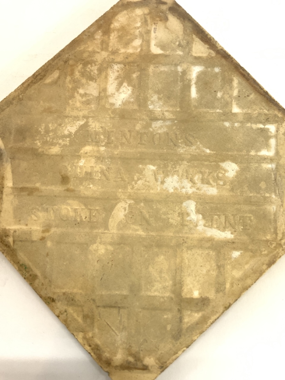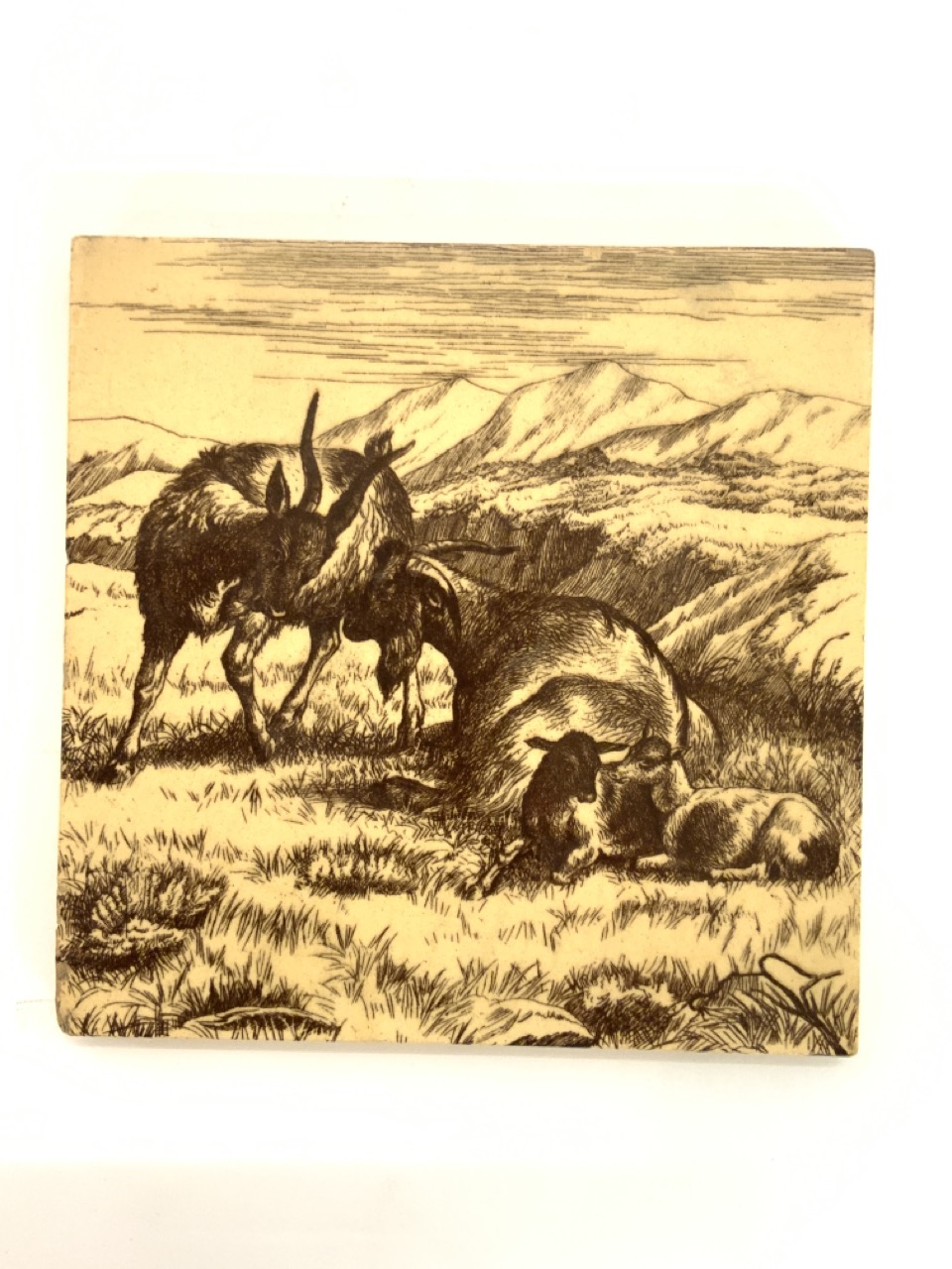 Minton tile with mountain goats in landscape. Stroke on Trent.