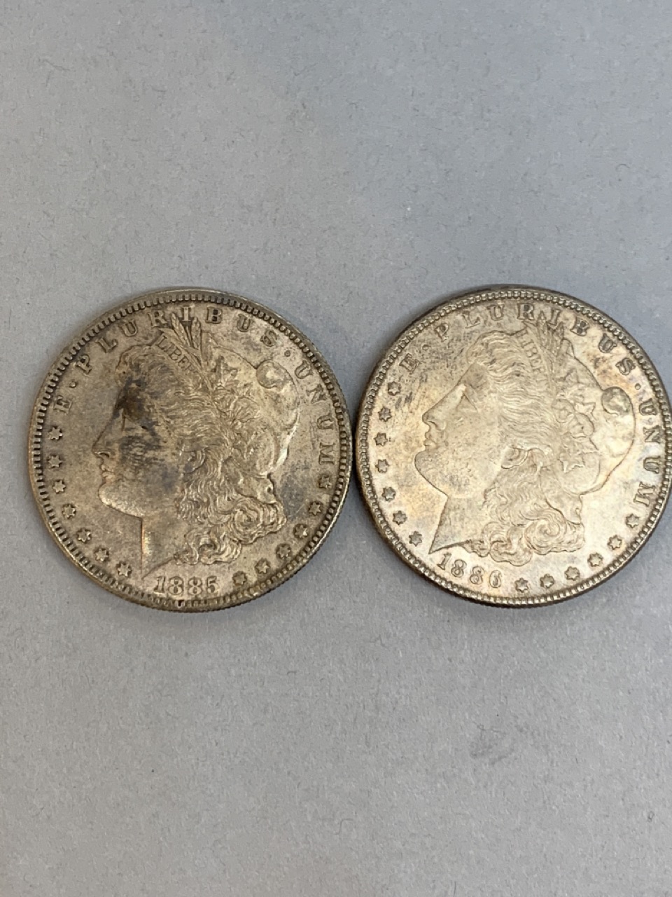 Two quantity Morgan silver dollars. 1885S and 1886.