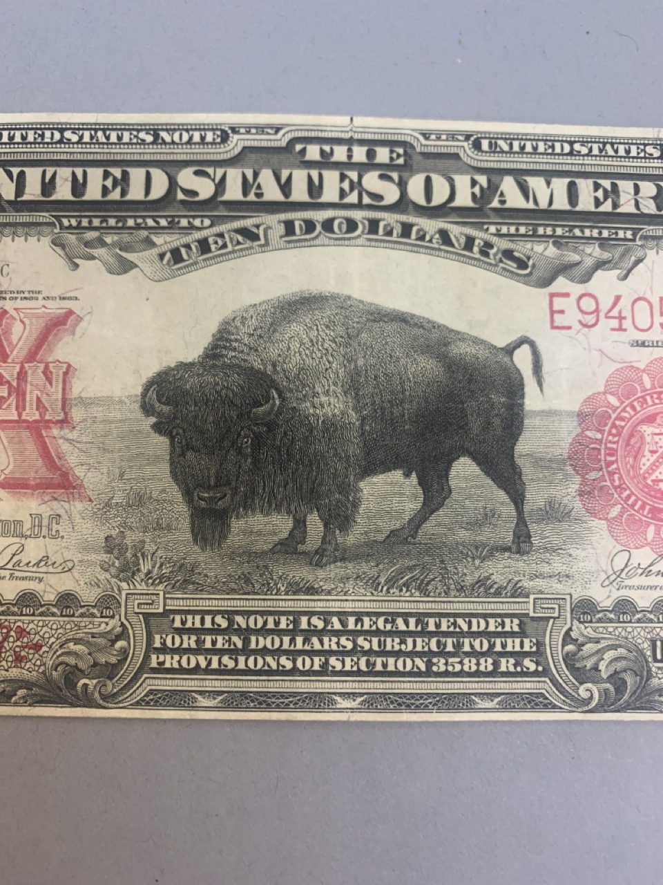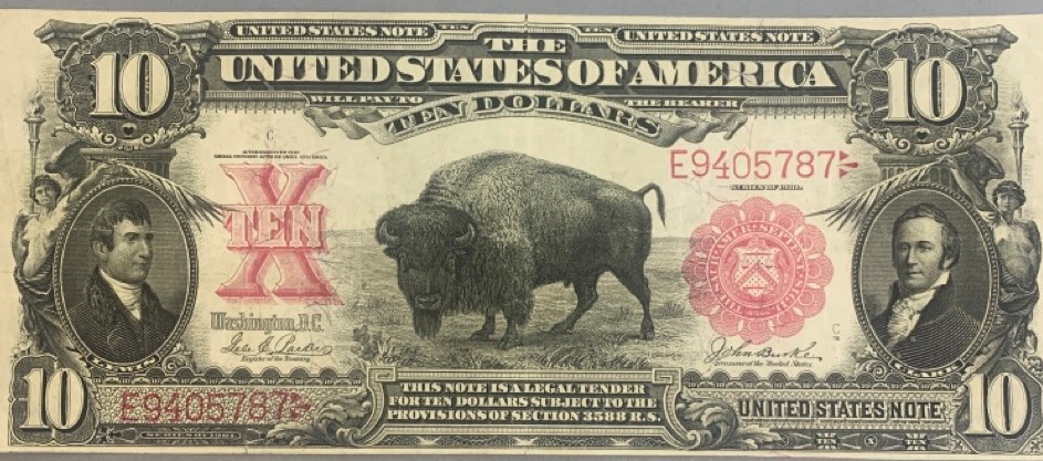 1901 $10 Bison legal tender note. Crisp.