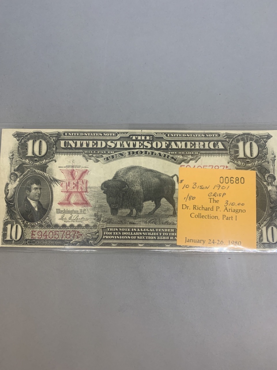 Provenance: The Dr. Richard P. Ariagno collection, part one January 24 -26, 1980. Paper currency collection offered in this sale has been stored away in safety deposit box since early 1980's. Exceptional collection all with sale provenance. Ungraded.