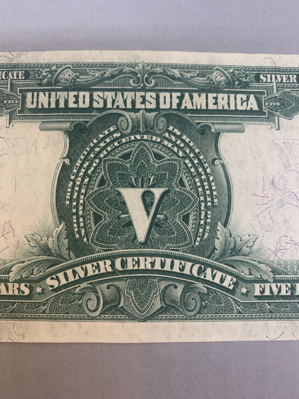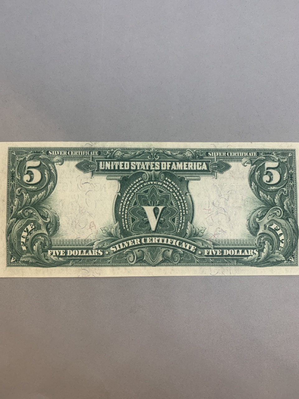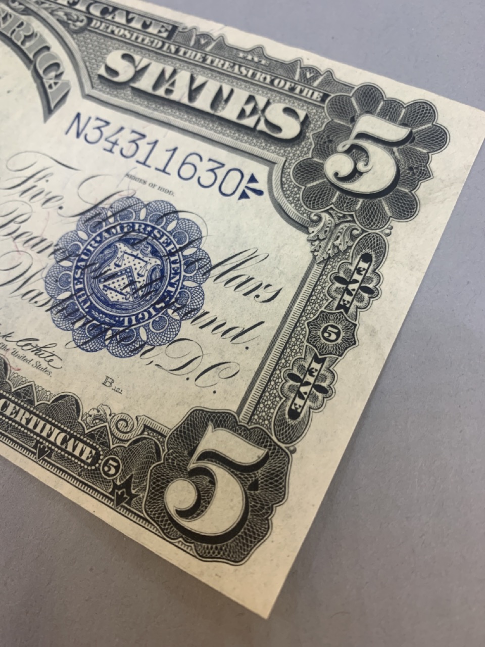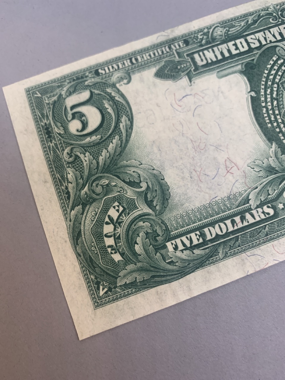 1899 Choice $5 Indian Chief silver certificate. Provenance: The Hetrich collection, Bowers and Ruddy Galleries January 20 8–30, 1982 Lot 3196. Paper currency collection offered in this sale has been stored away in safety deposit box since early 1980's. Exceptional collection all with sale provenance. Ungraded.
