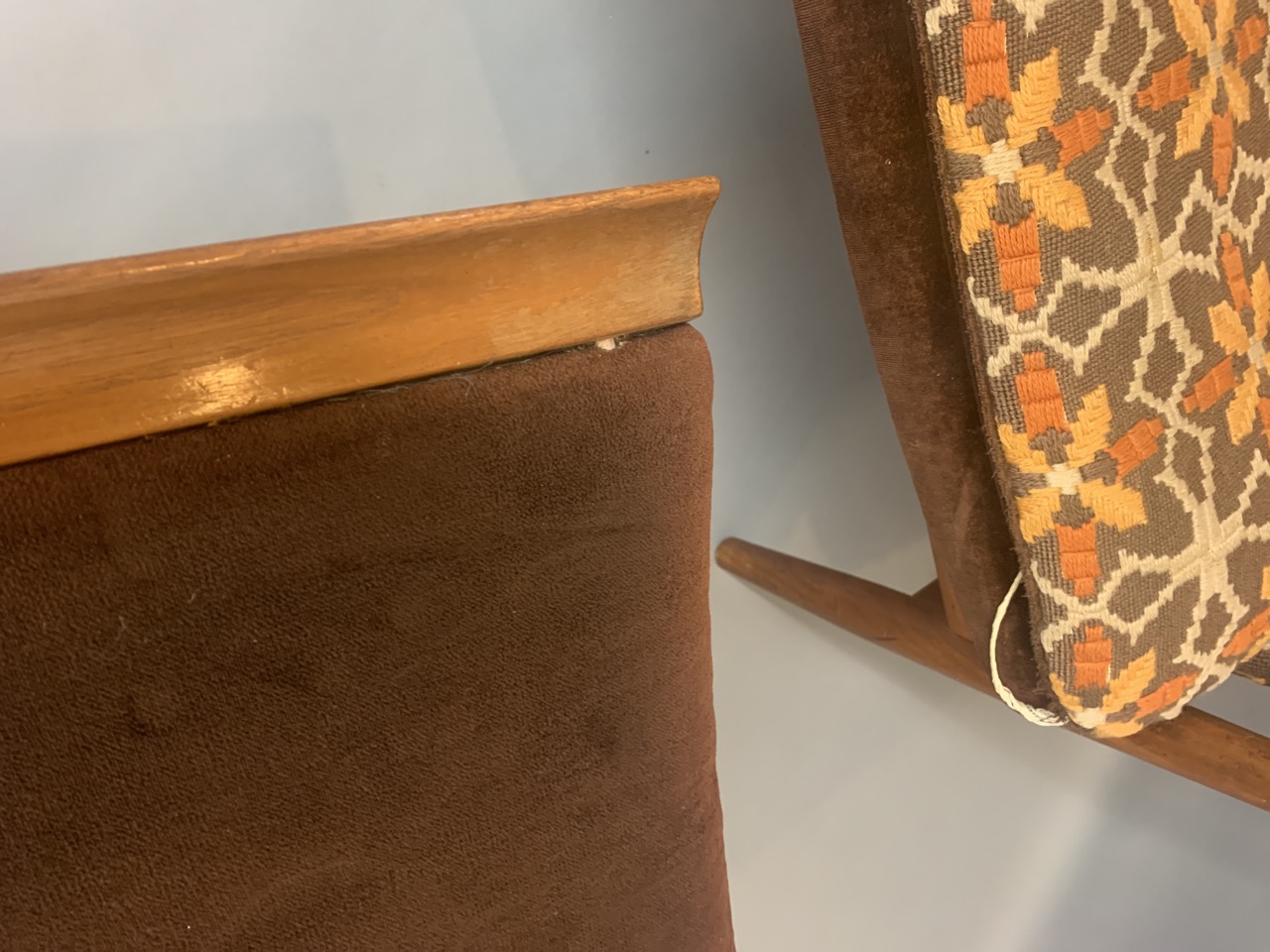 Appearing to be original upholstery some minor scratches, original finish overall very good sound piece. Please see photograph preview or call.