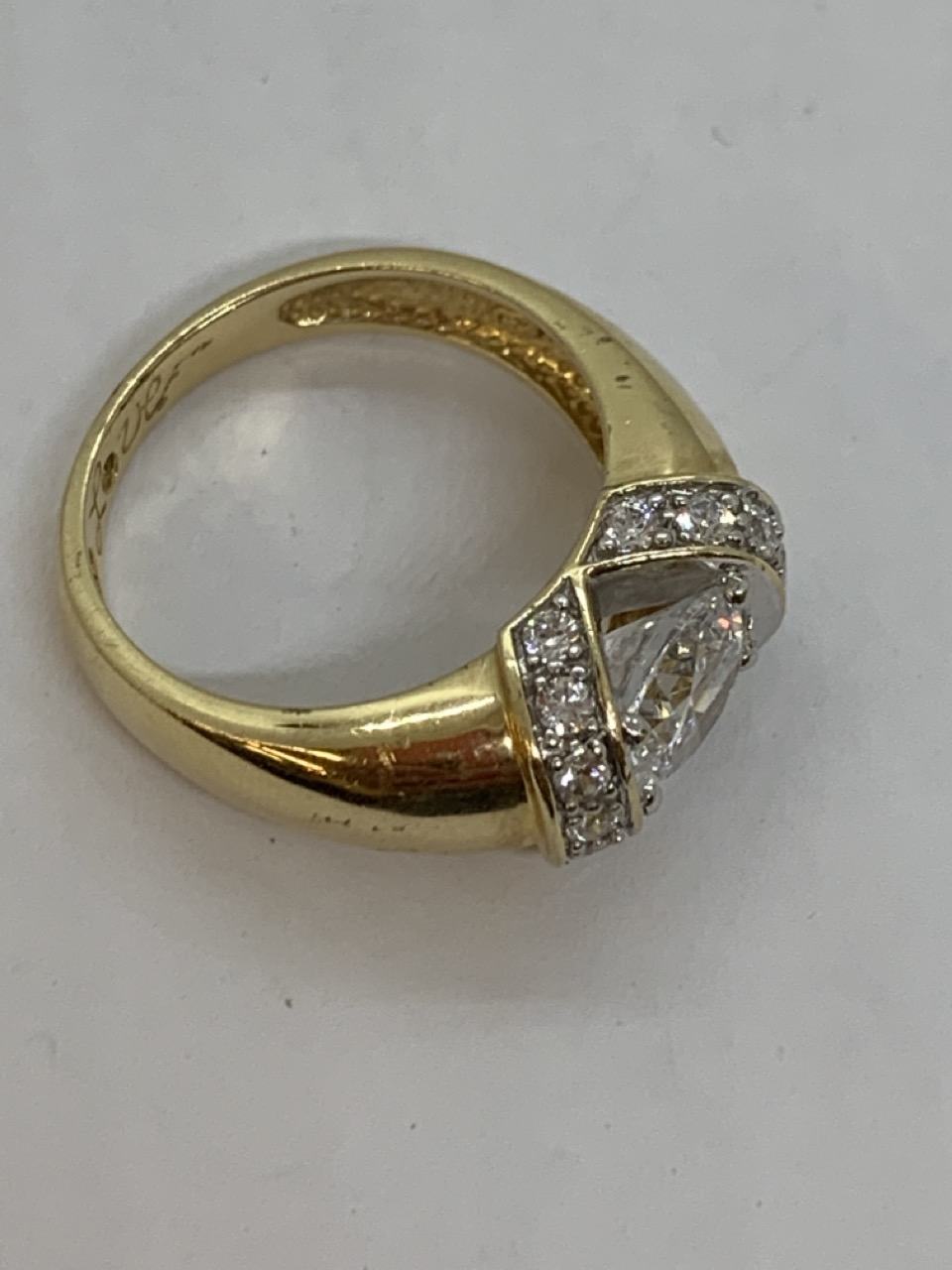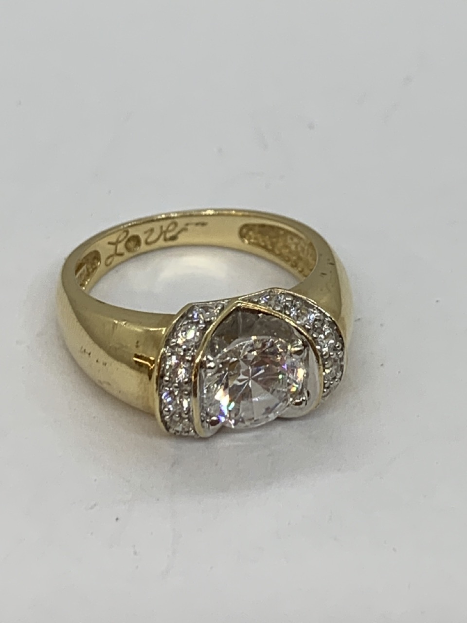 A 14k yellow gold CZ Love ring.