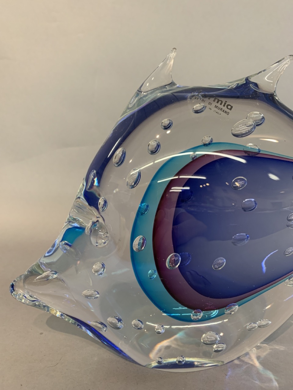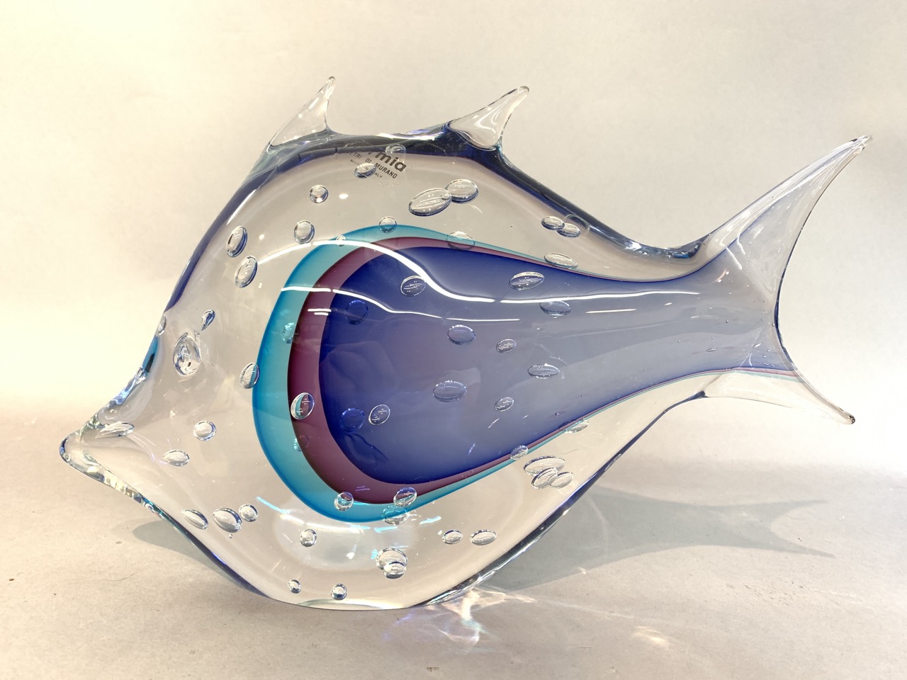 Marano art glass fish sculpture by Formia. Made in Italy Dimensions: 8” x 12”
