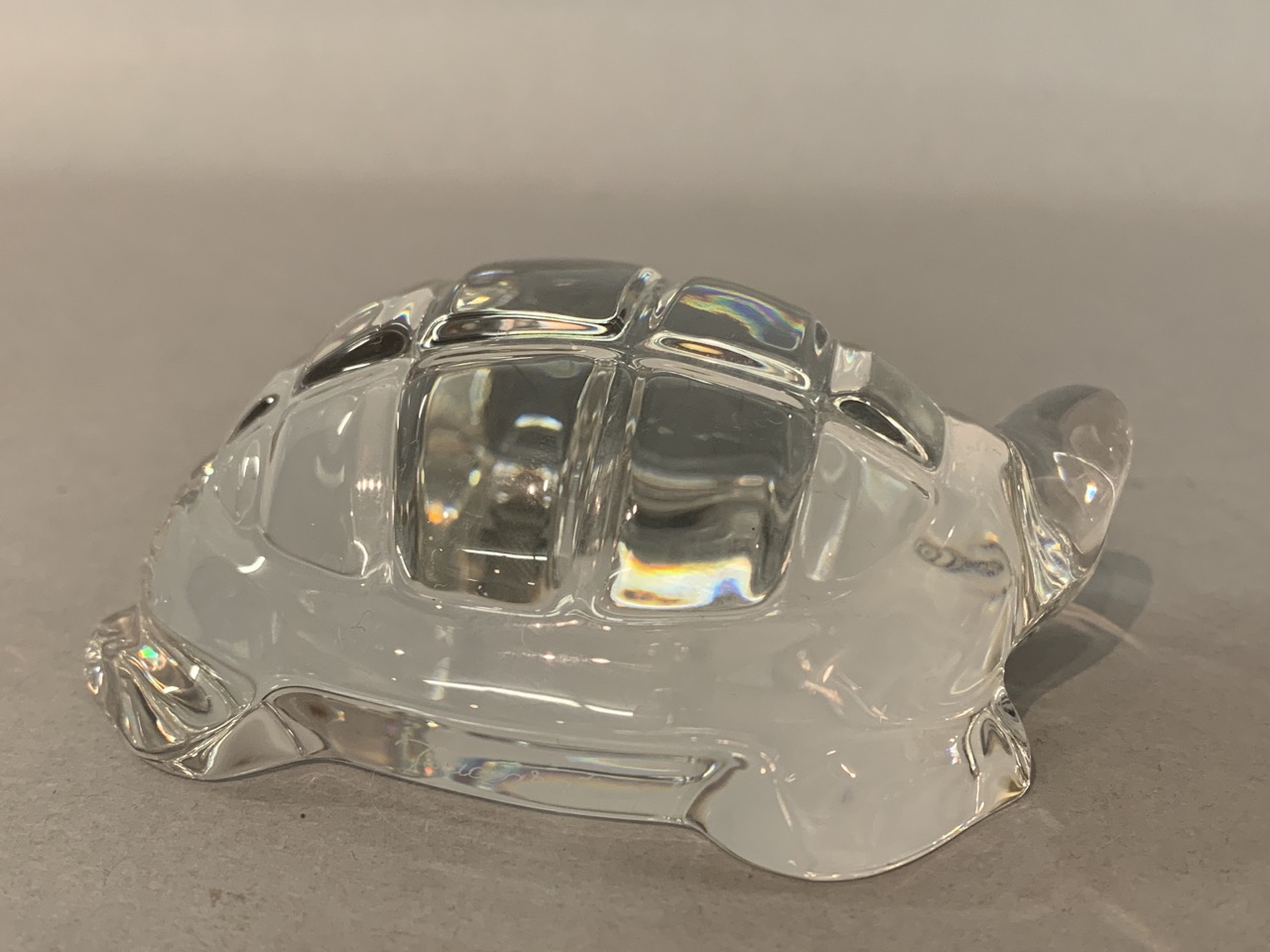 A Baccarat crystal turtle paperweight. Signed at base.