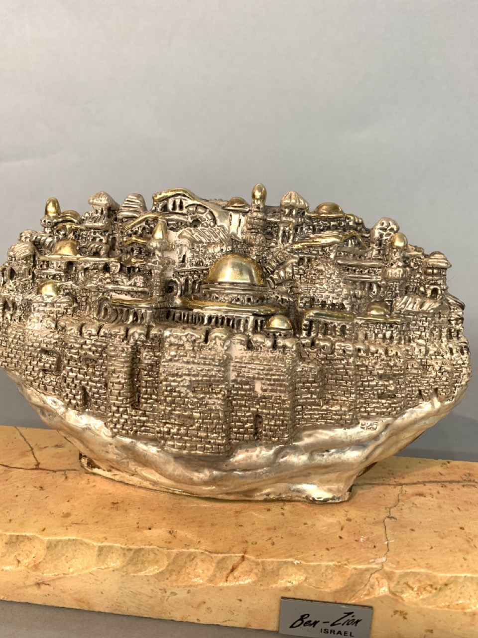 Ben Zion "Jerusalem" city sculpture in sterling silver. Dimensions: 5” x 9” x 2”