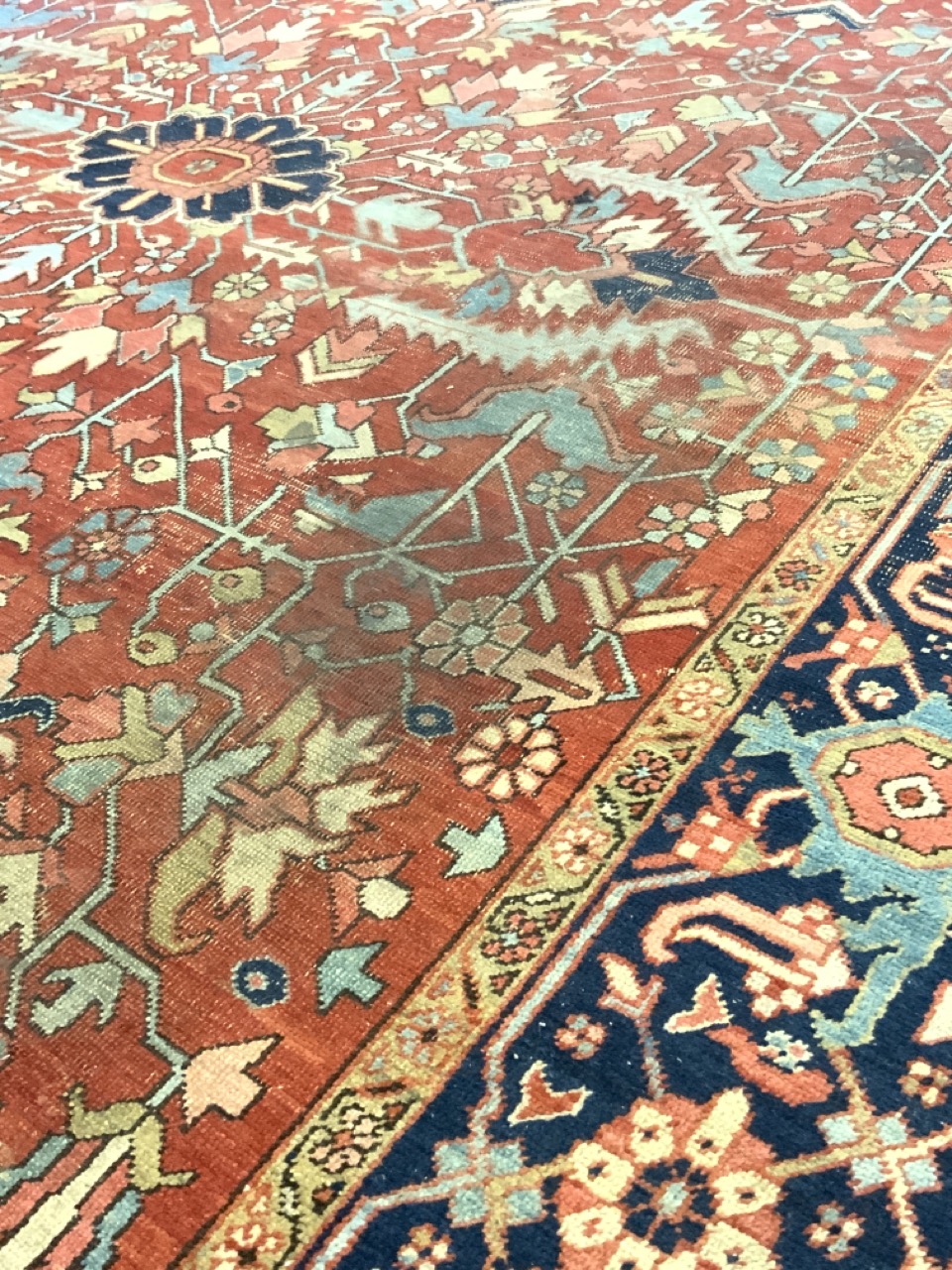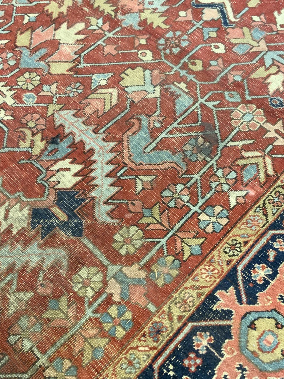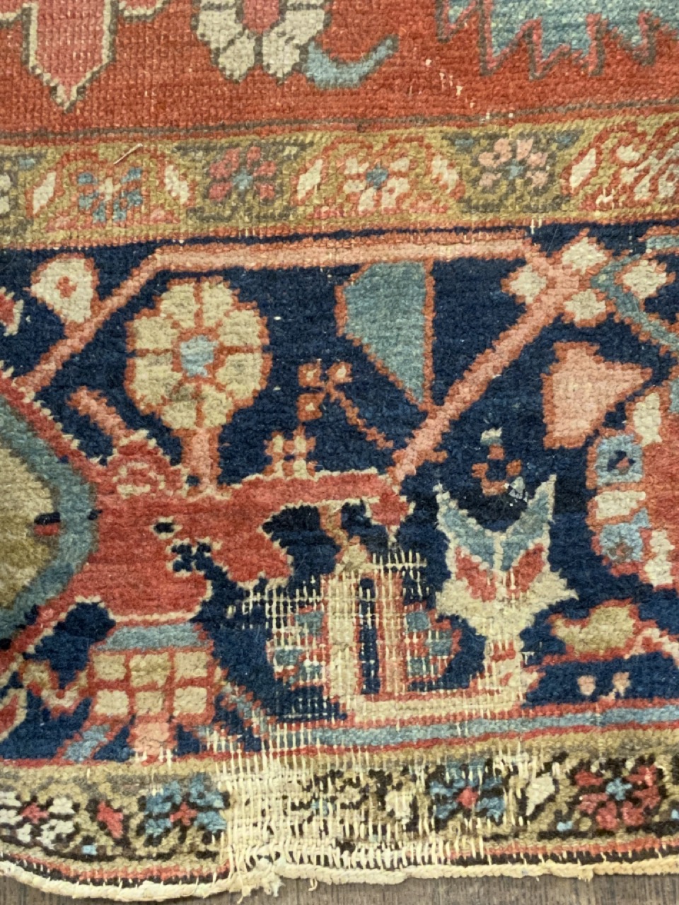 No odors, rug does show some staining, fading and edge wear. Please see photograph preview or call.