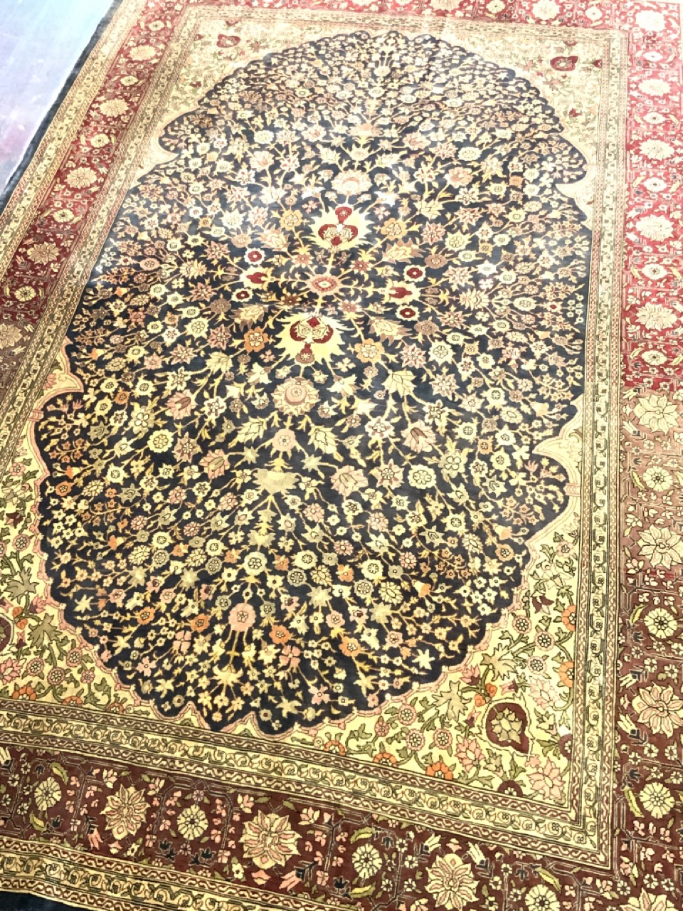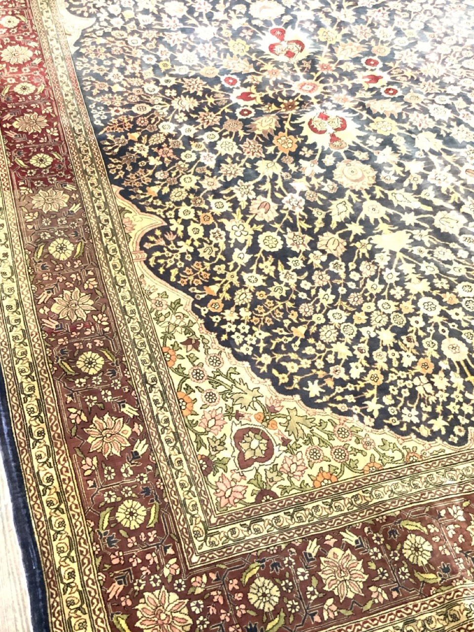 A fine persian silk Tabriz carpet. 1st half 20th century.