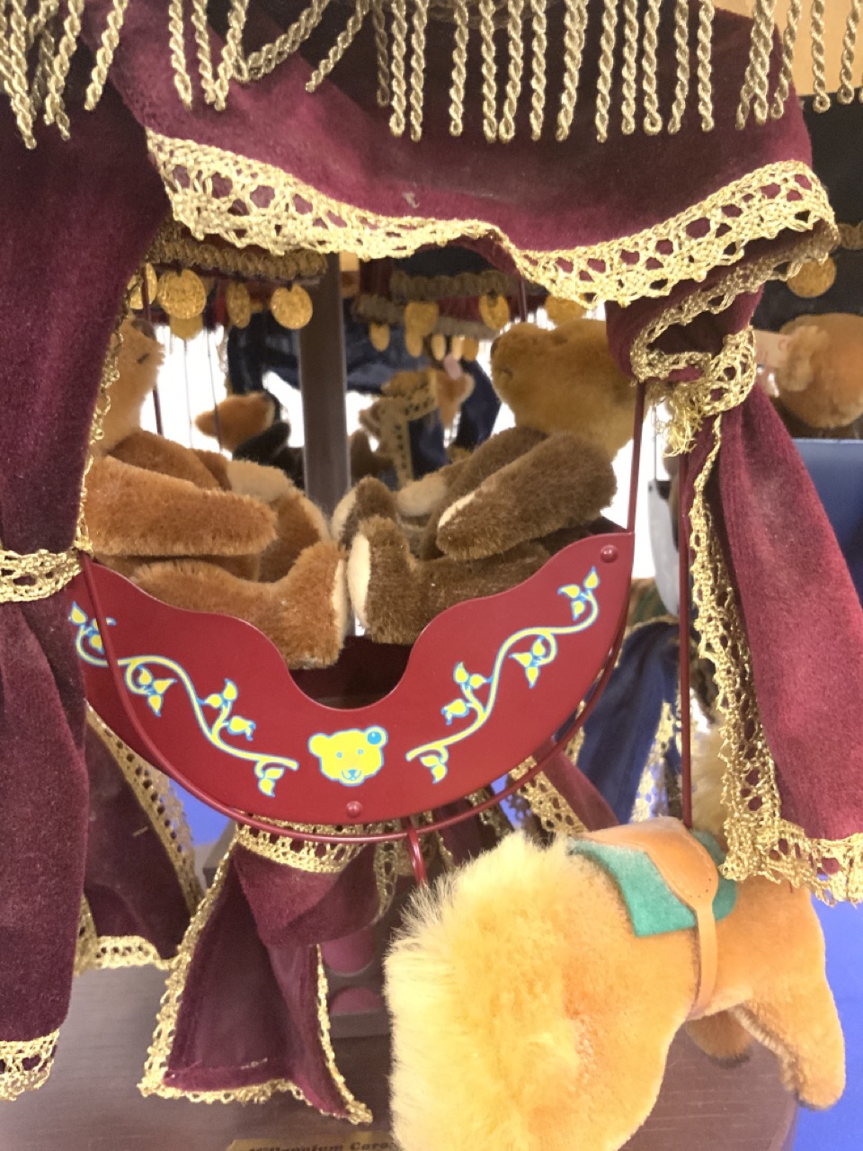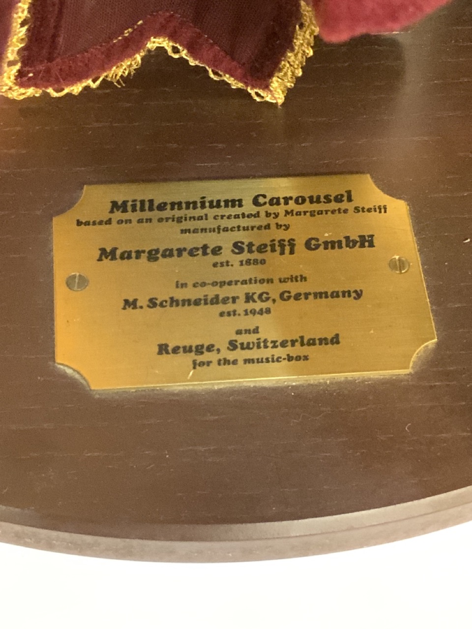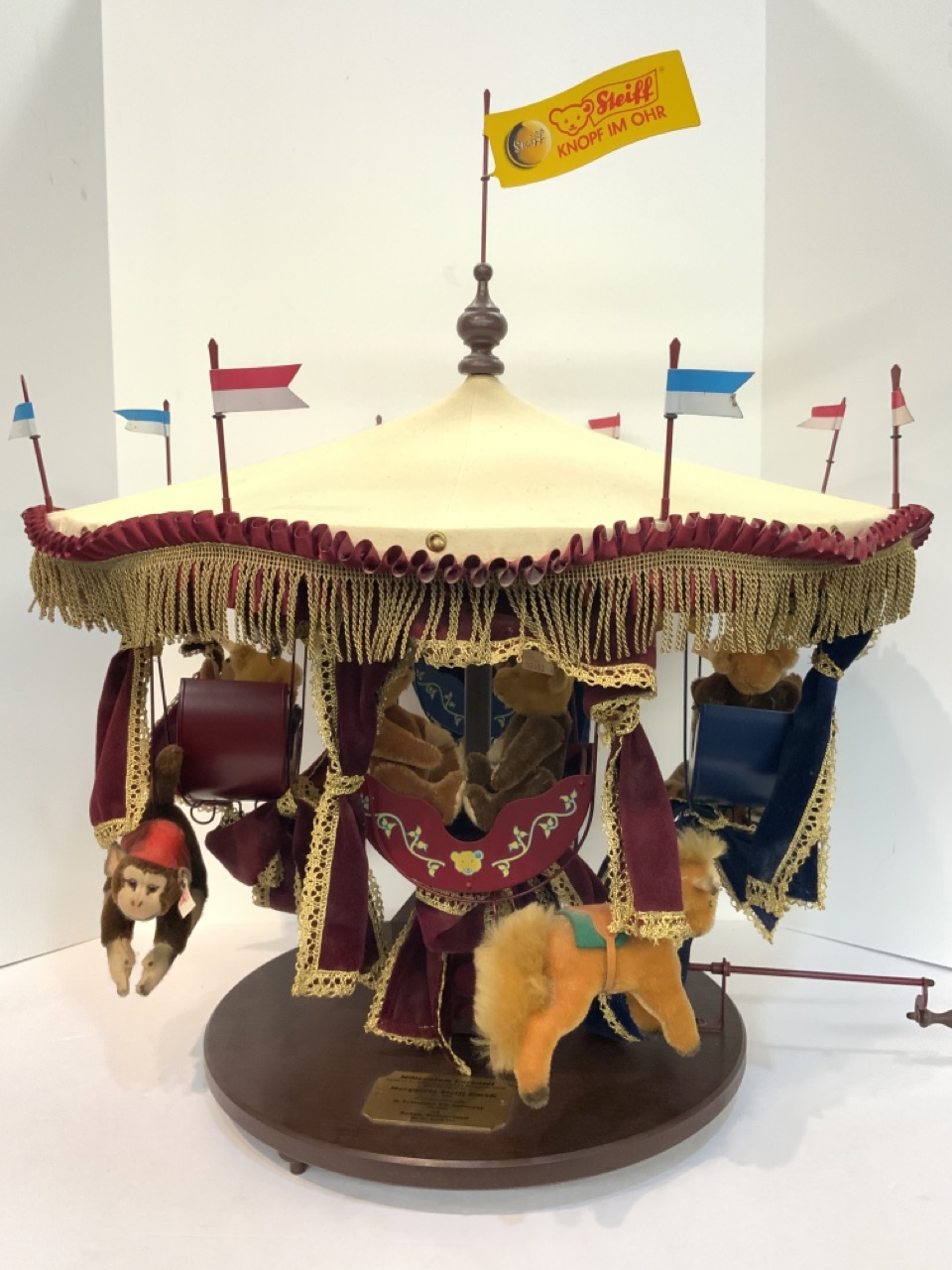 A Limited edition Steiff Millennium carousel with horses, monkey, tiger and bears. Side crank operation, musical.