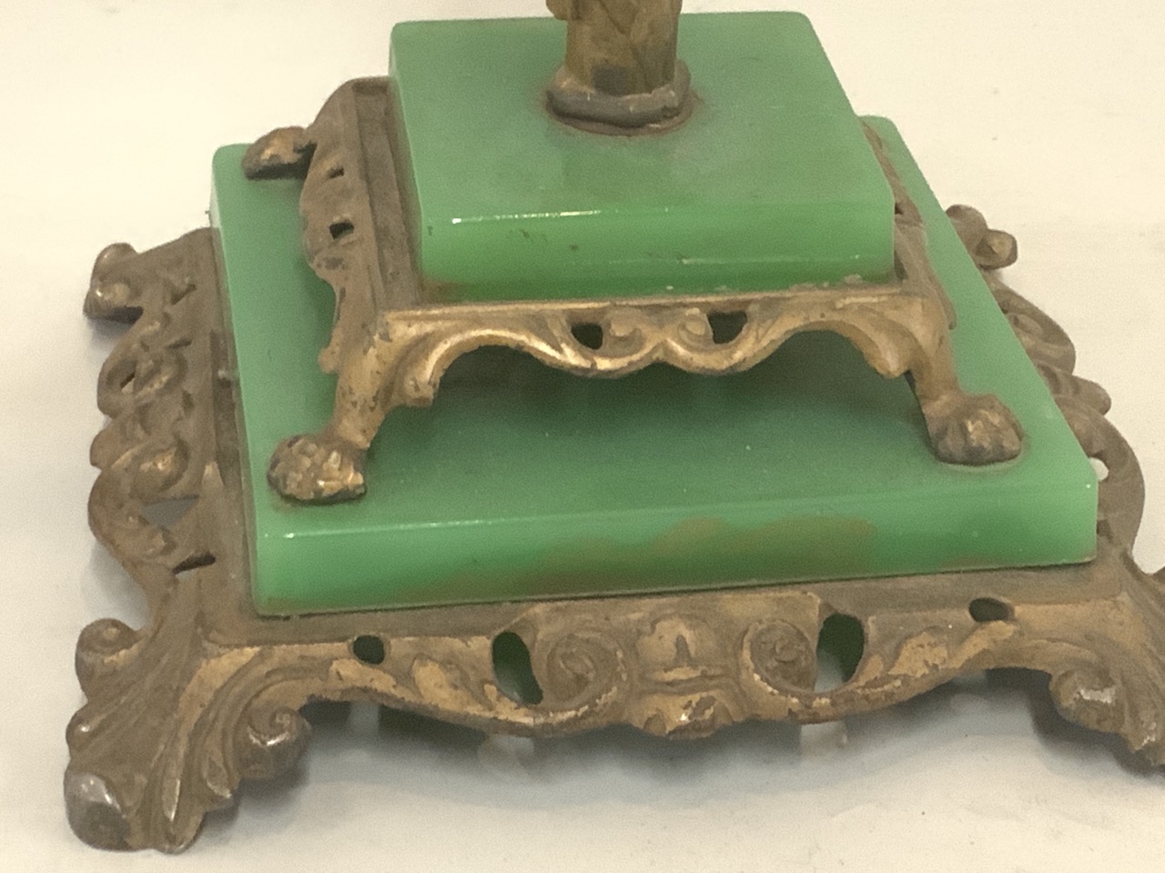 Standing Dragon Ashtray with jadeite green glass base.