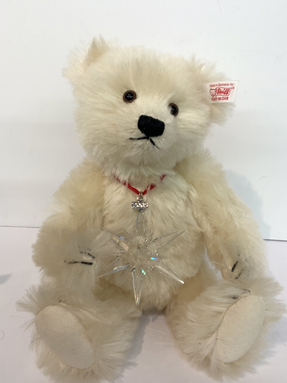 Two Swarovski Steiff teddy bears. Made in Germany.