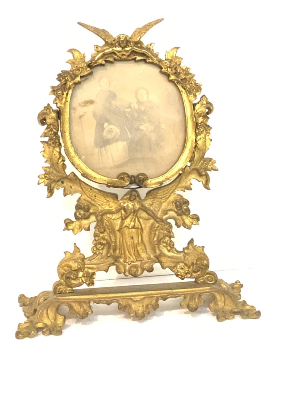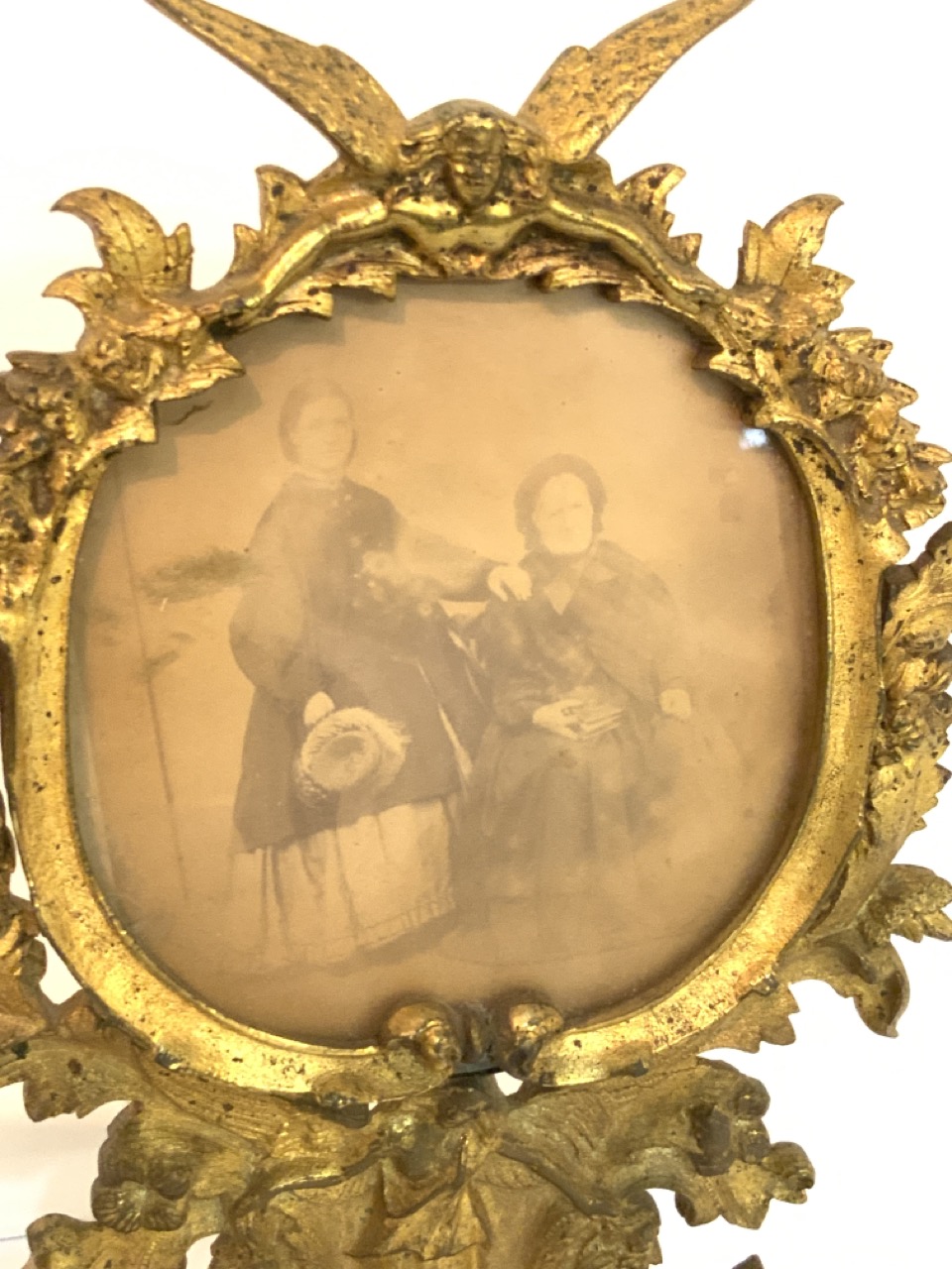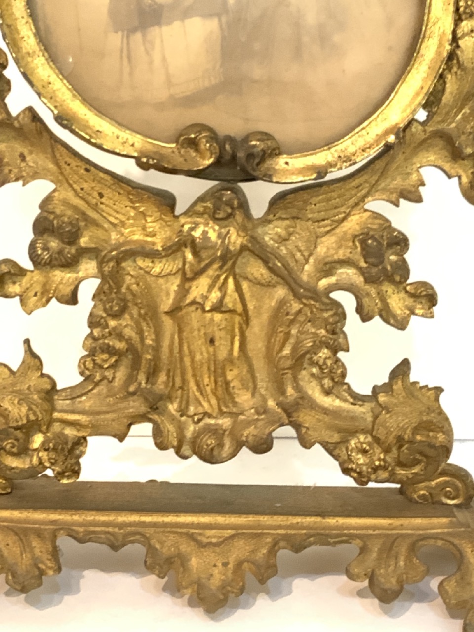 Civil War era ornate picture frame with butterfly winged ladies or angels.