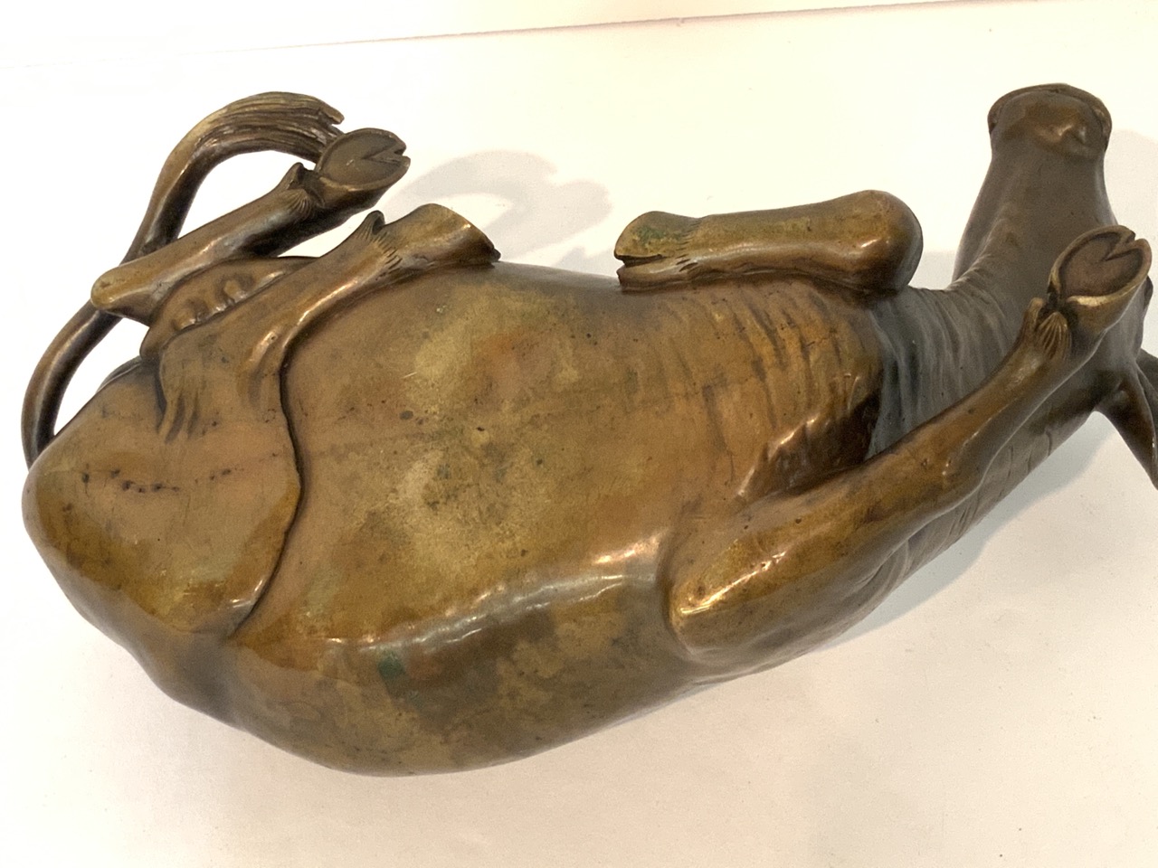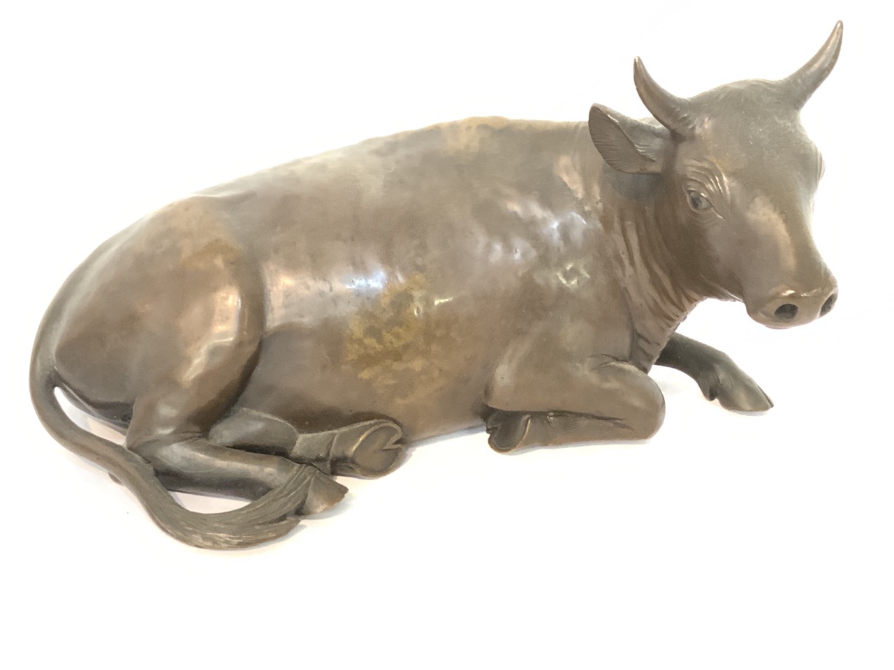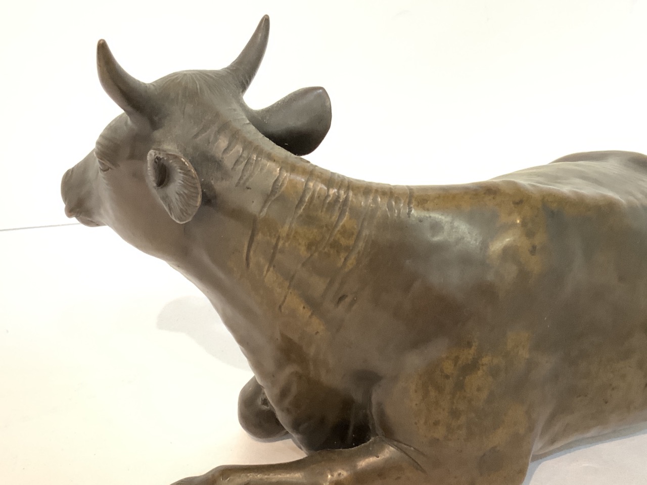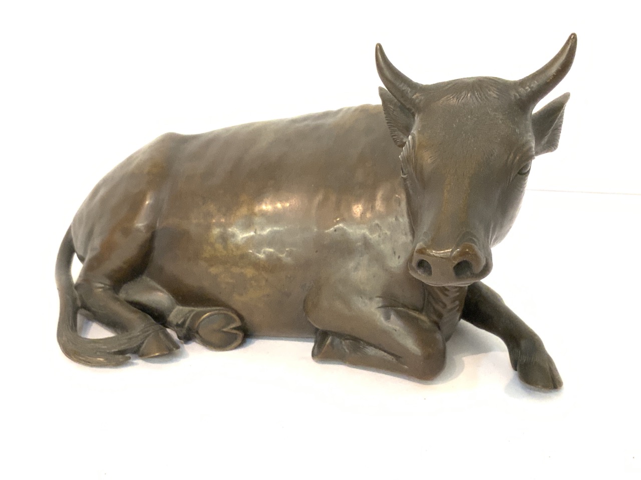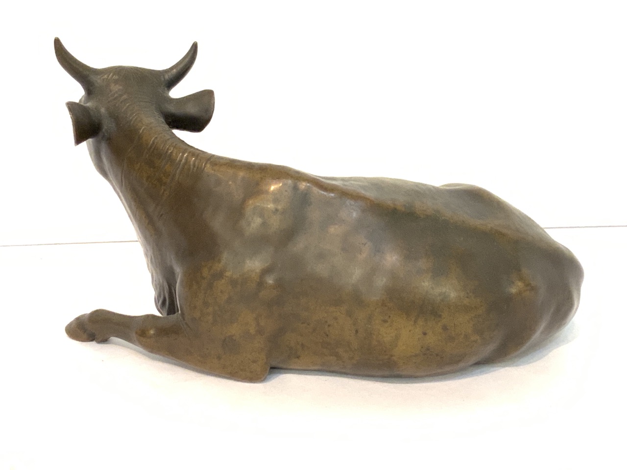 Bronze cow with glass inset eyes. Unsigned. Fine patina.
