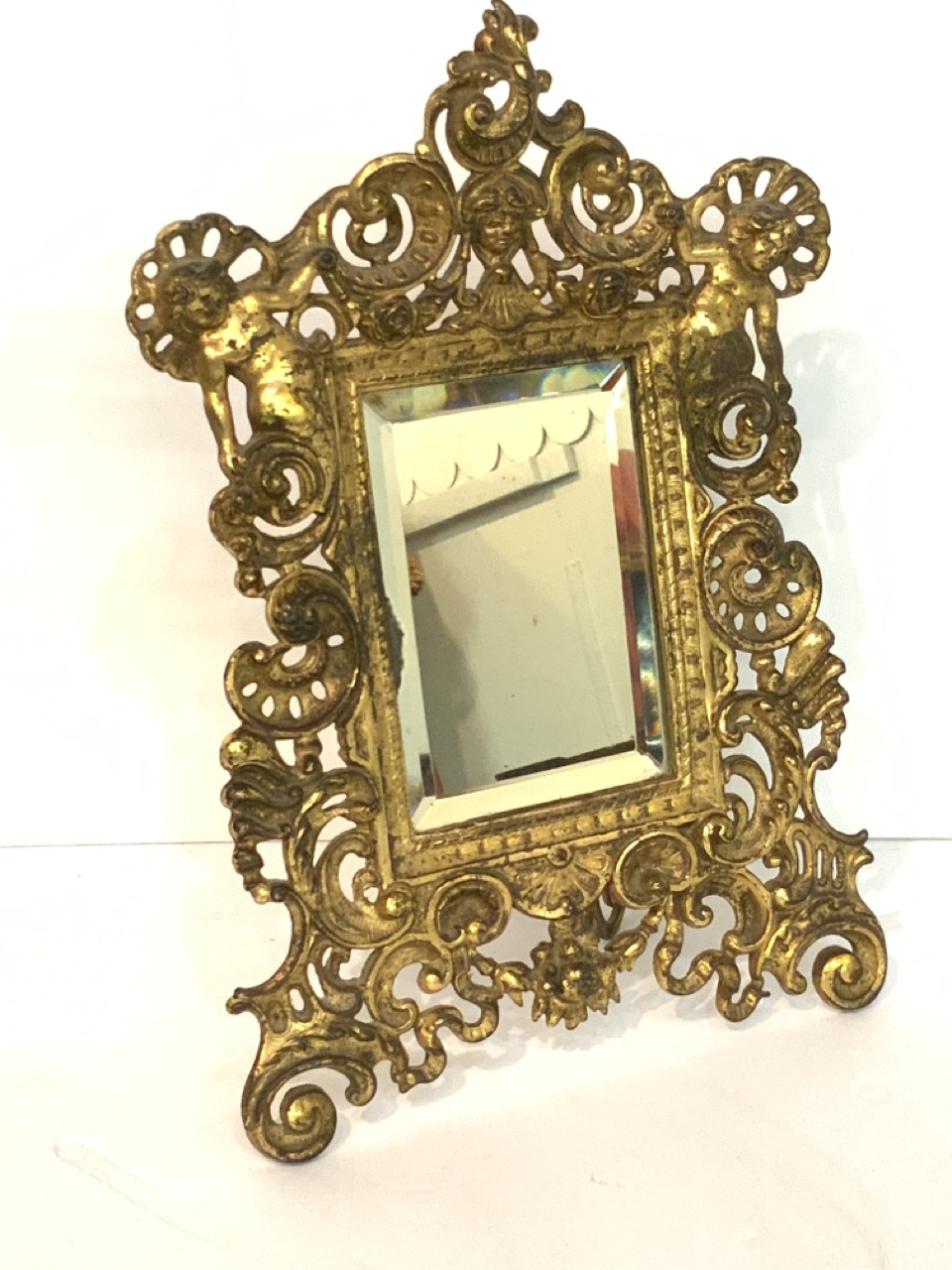 A Victorian easel back mirror with Putti.