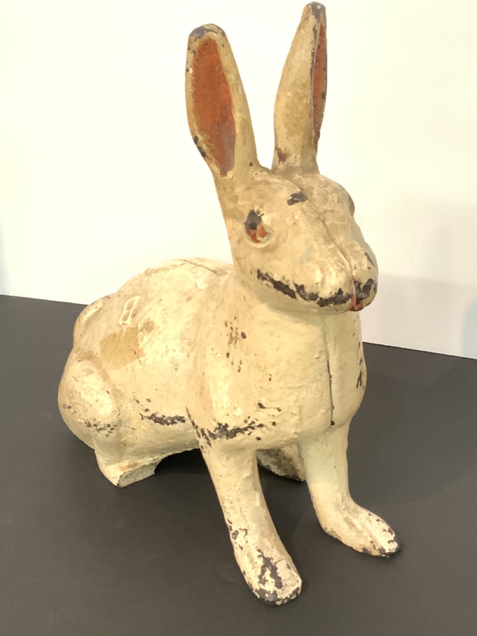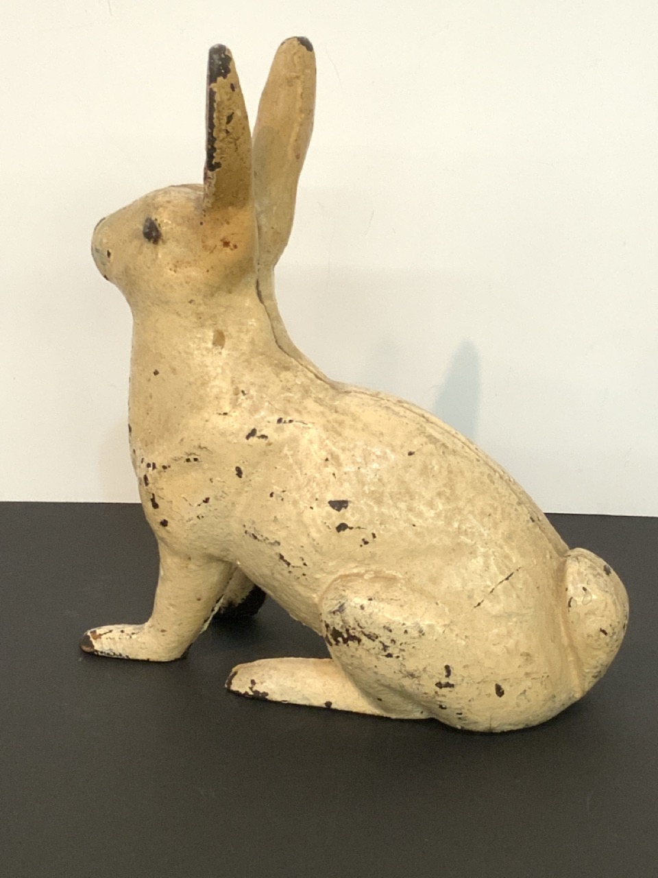 A large cast iron antique rabbit door stop.