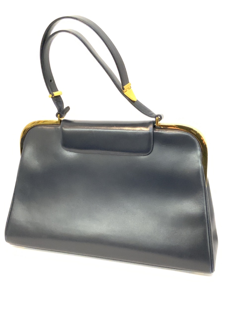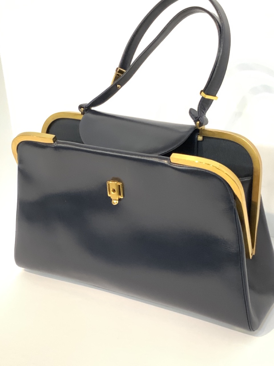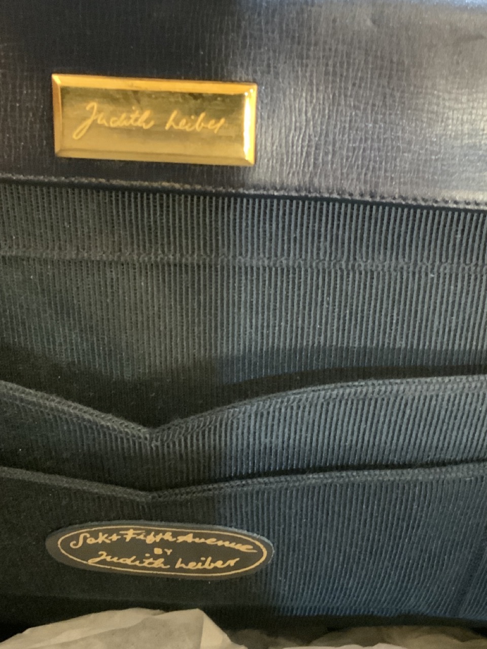 Judith Lieber for Sak's 5th Avenue navy blue leather hand bag.