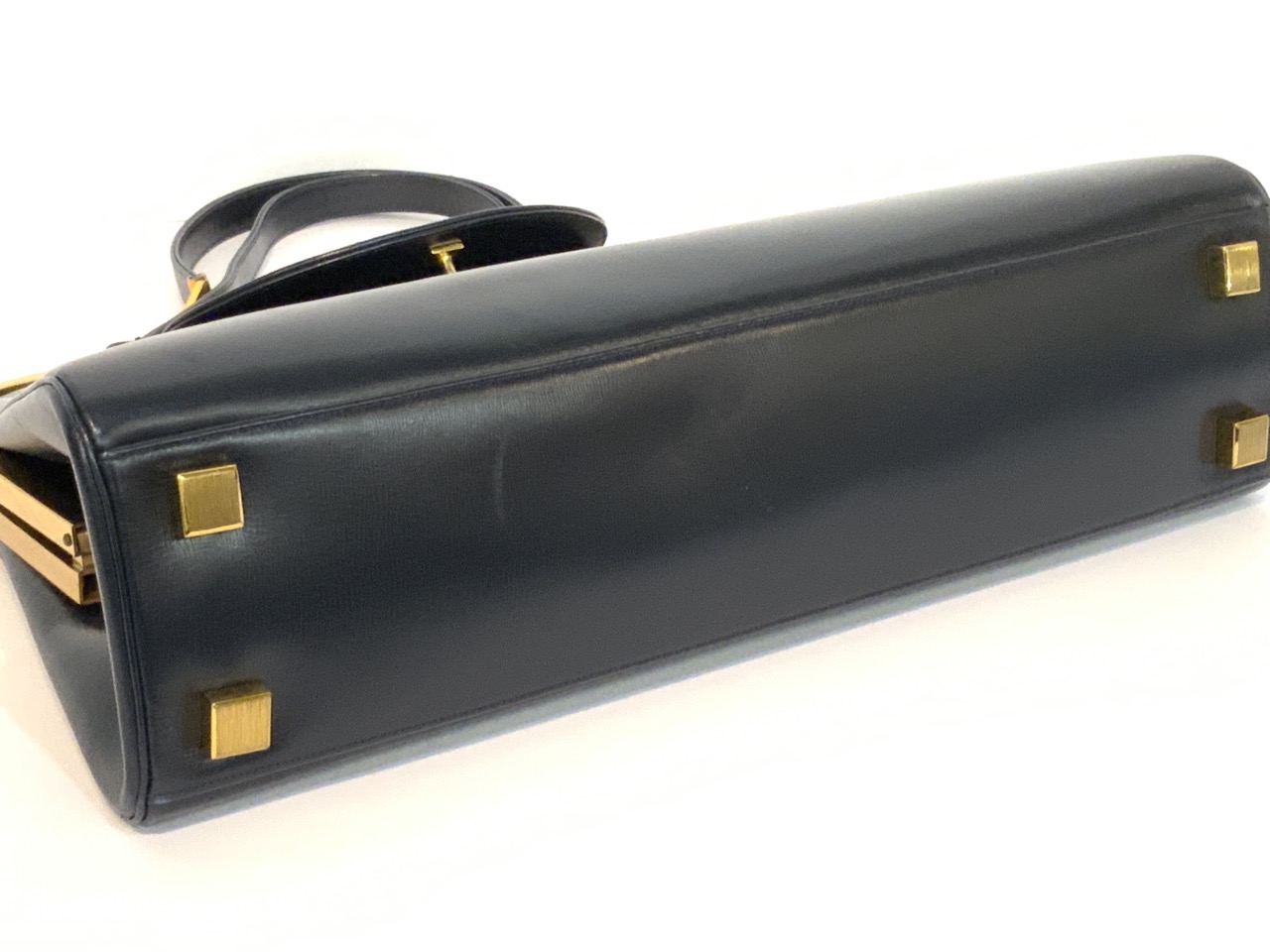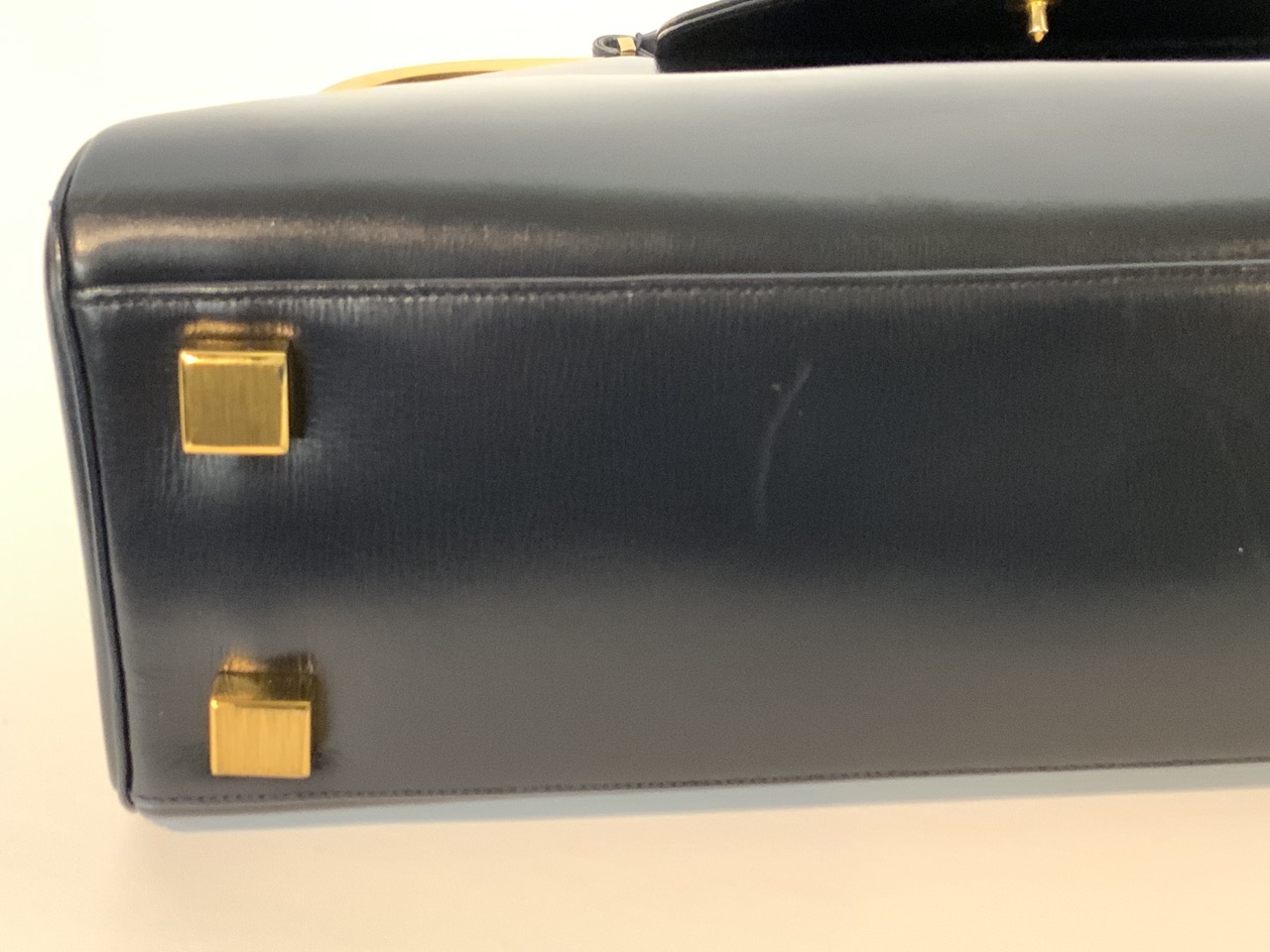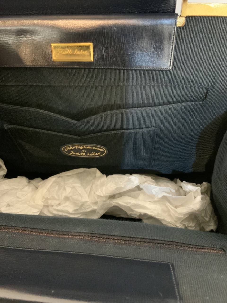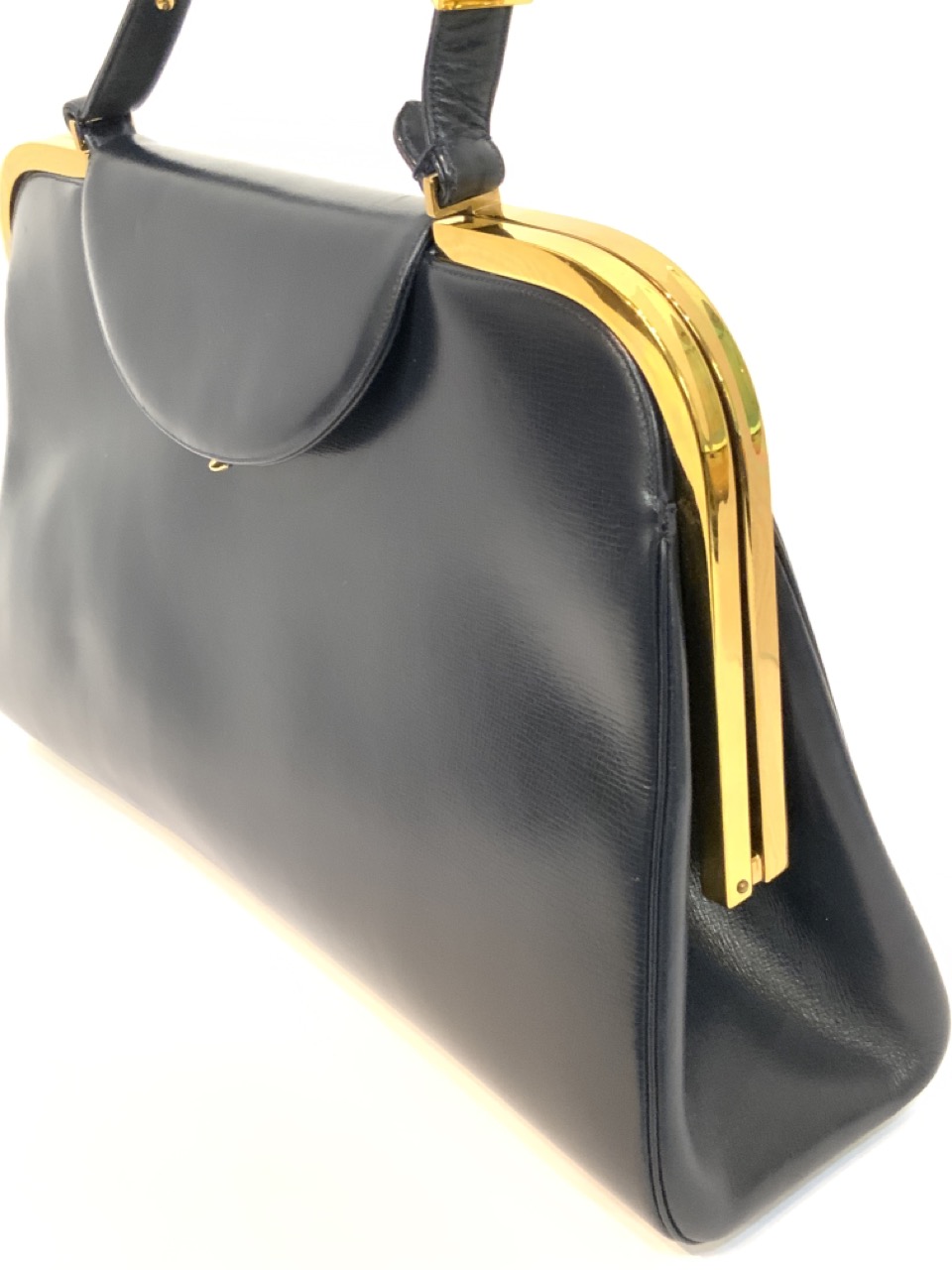 Judith Lieber for Sak's 5th Avenue navy blue leather hand bag.
