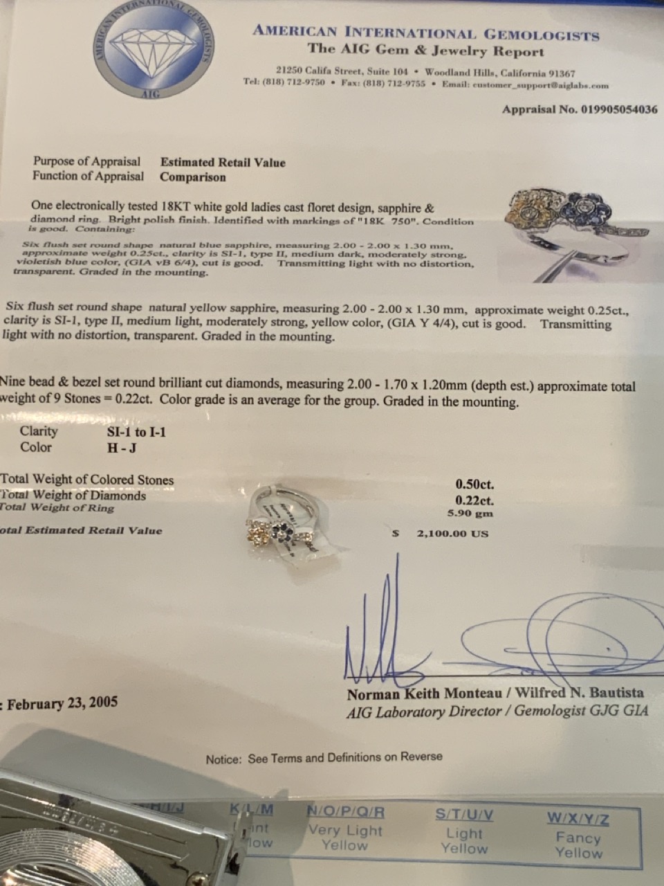 AIG Appraisal with gemology (GIA) report inlcuded.