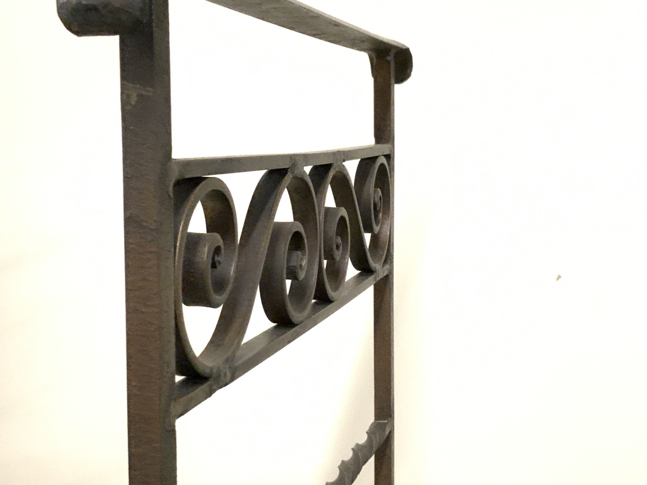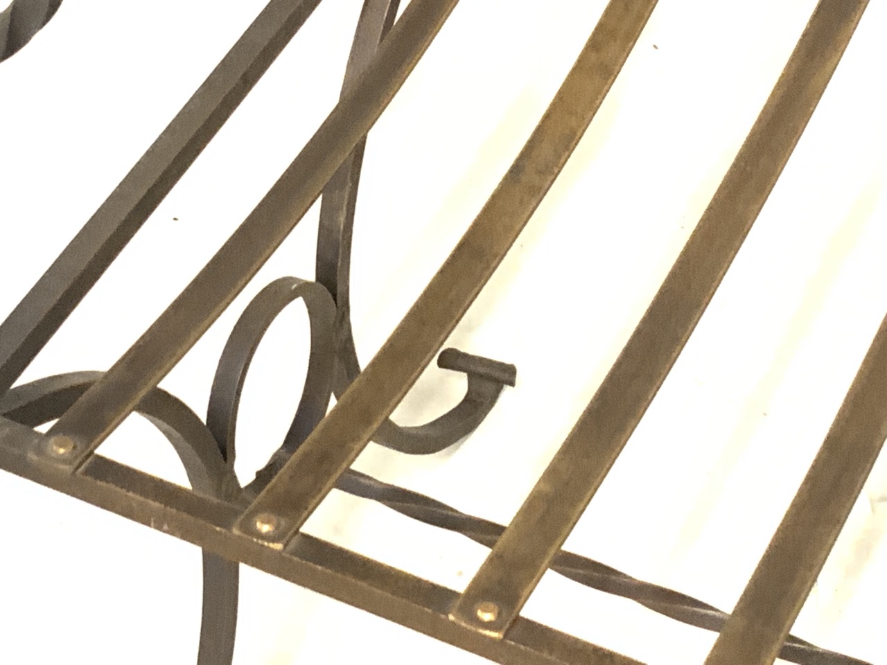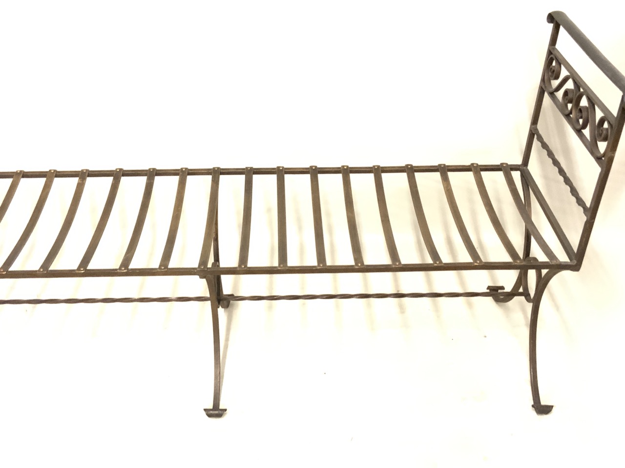 Antique wrought iron open back style bench. Excellent condition, great patina.