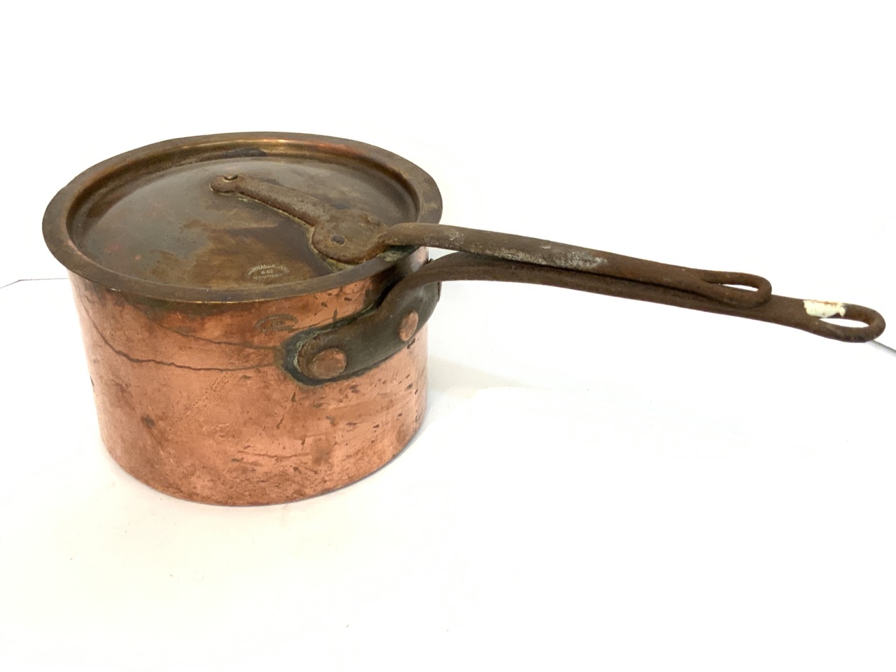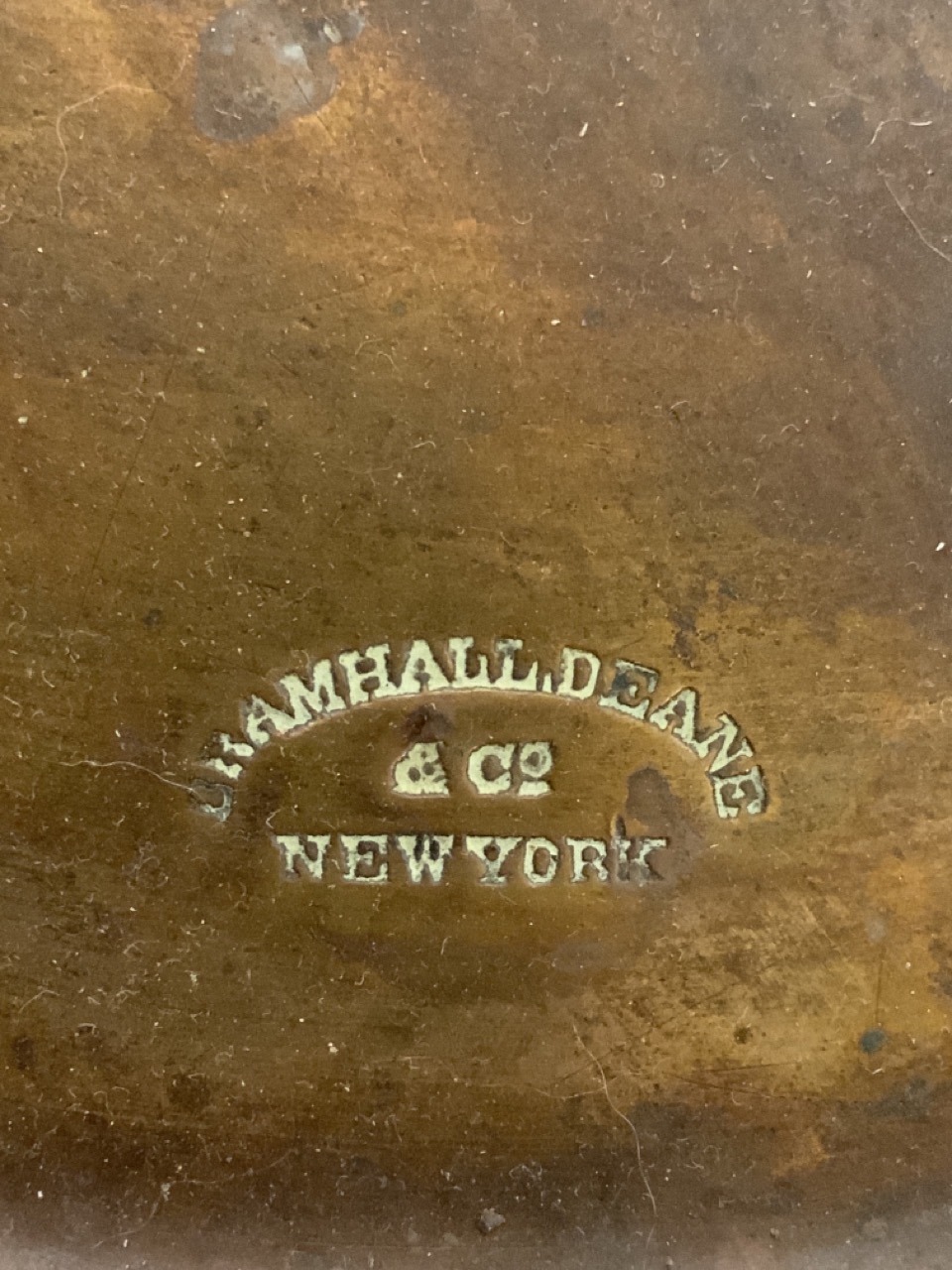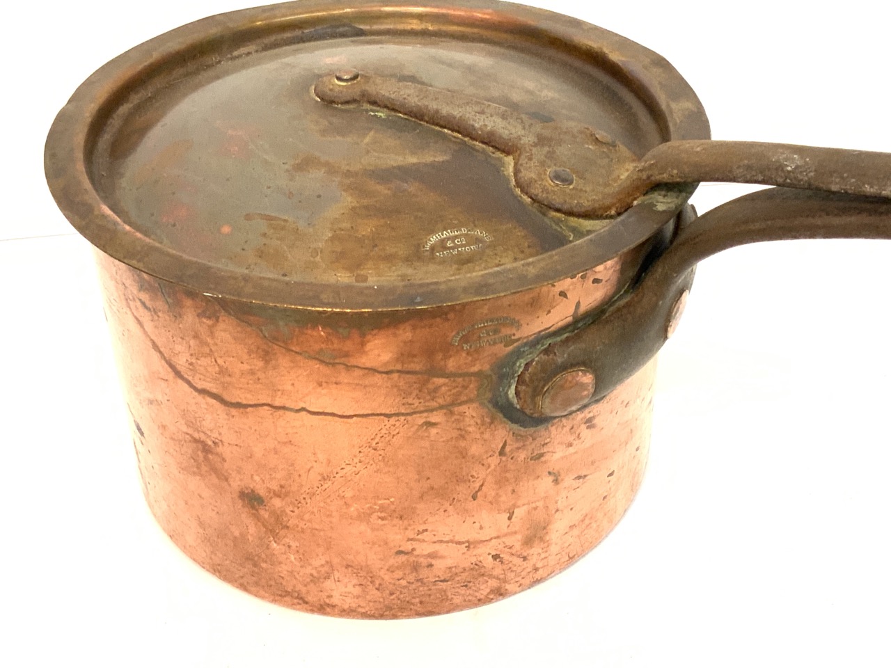 A large copper stock pot with lid. Signed for Bramhall Deane & Co. New York.
