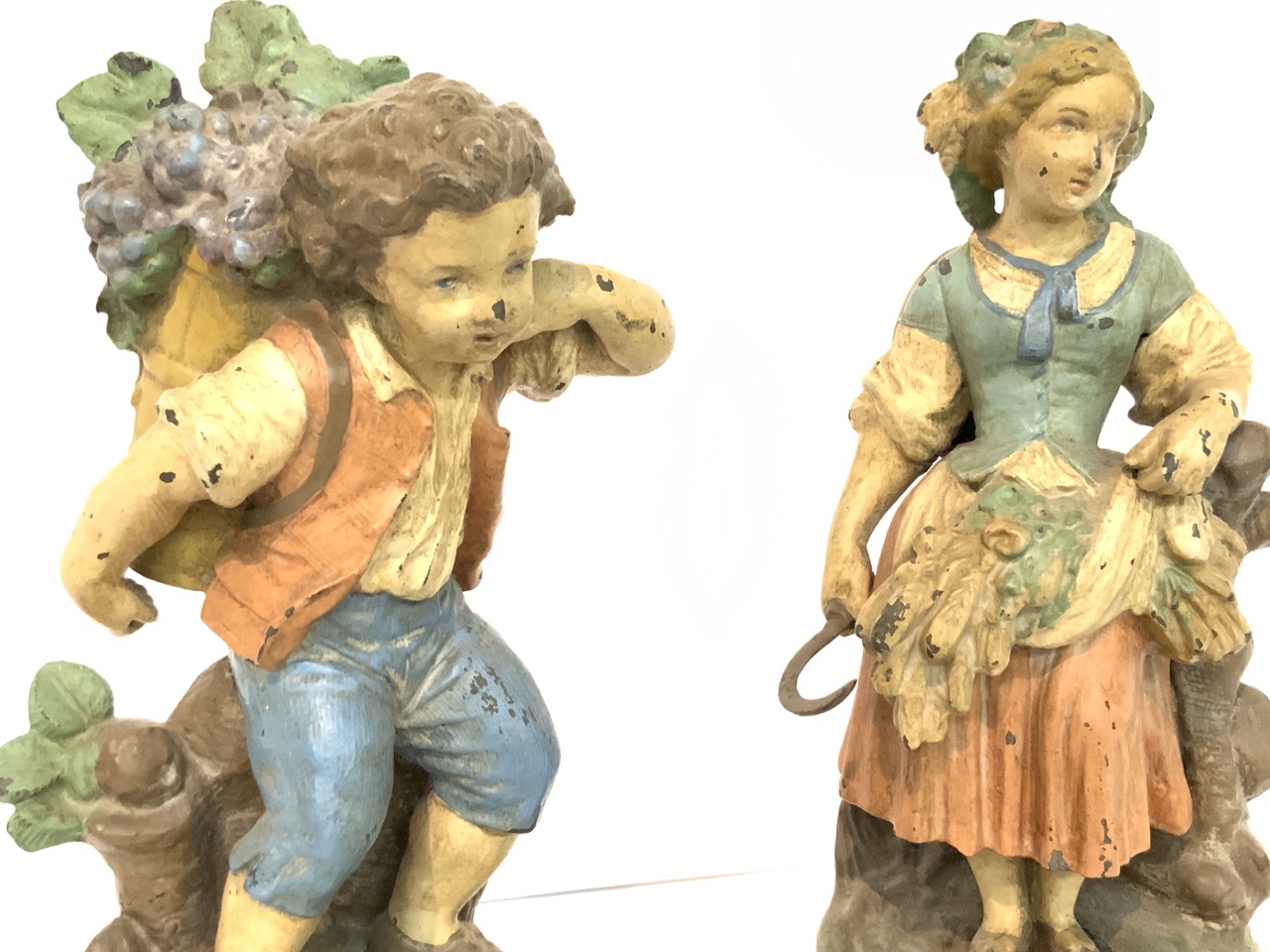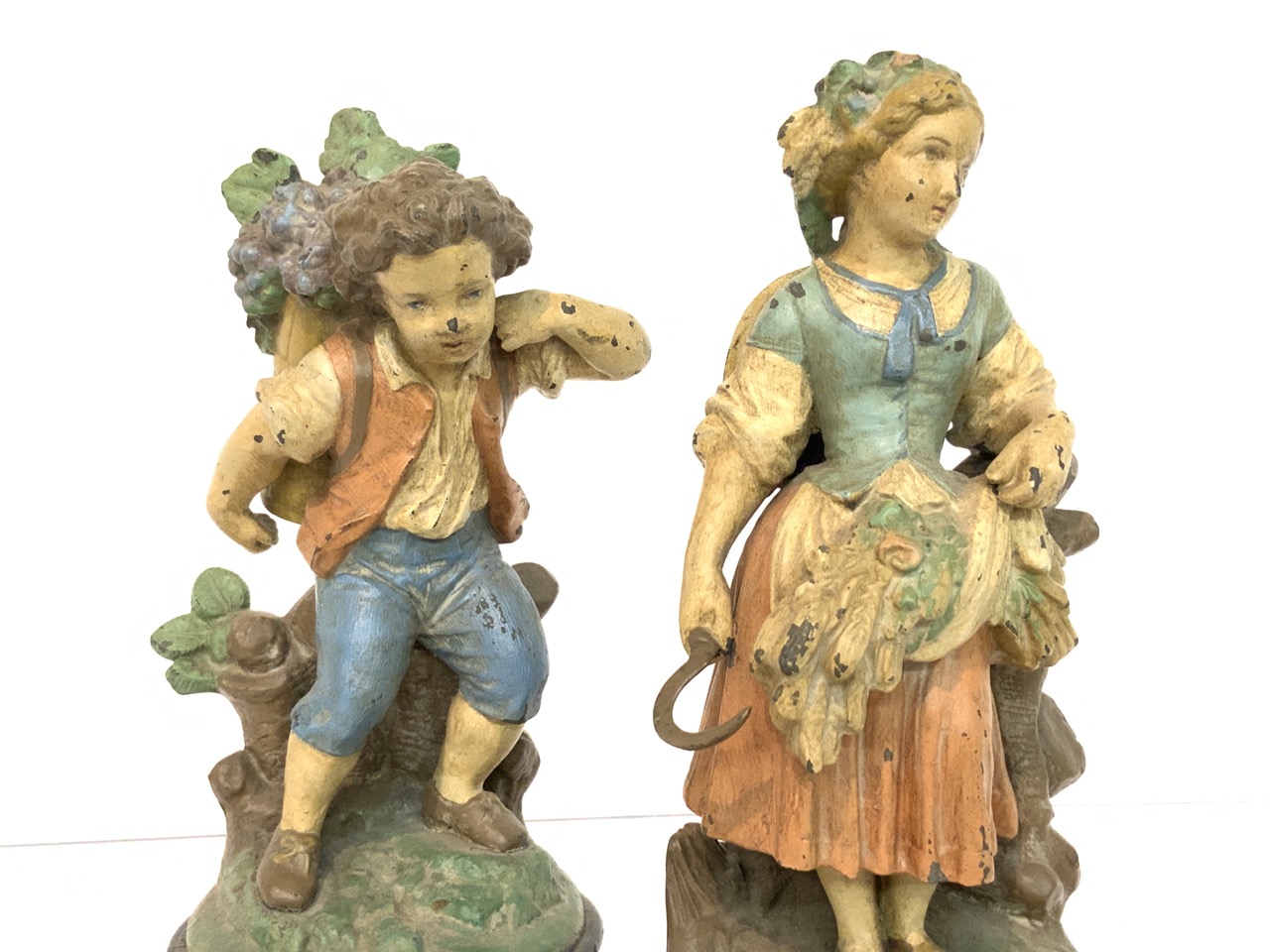 A pair of mid 19th century American iron painted peasant figures. Harvesting with girl holding sickle. Mounted on wood bases. Excellent condtion. Please see photograph preview.