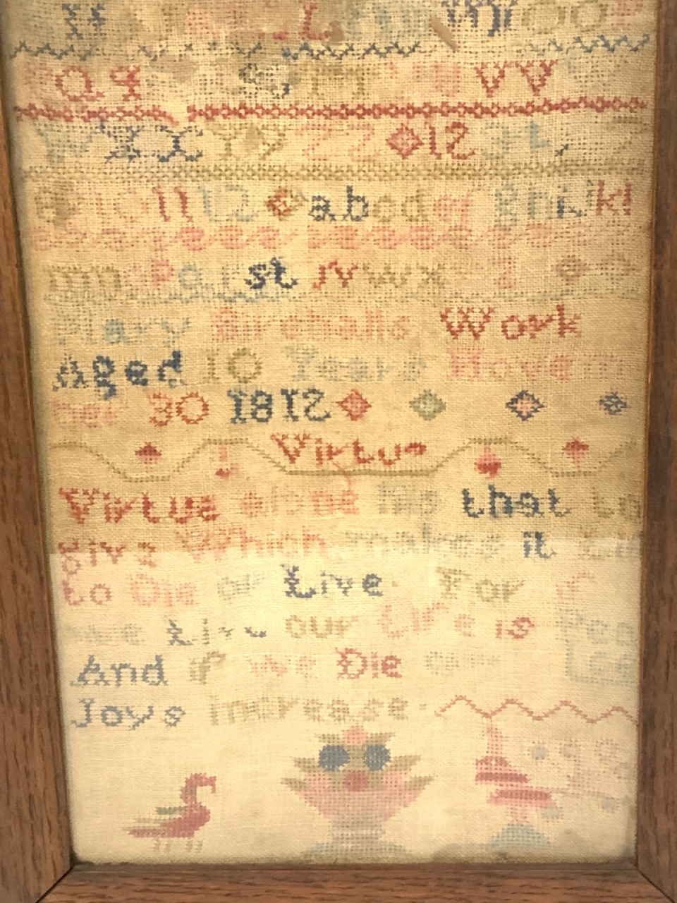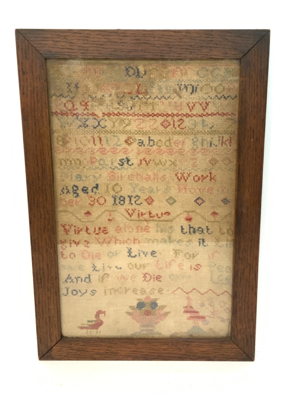 Mary Birchall's work aged 10 years November 30,1812 Child Sampler.