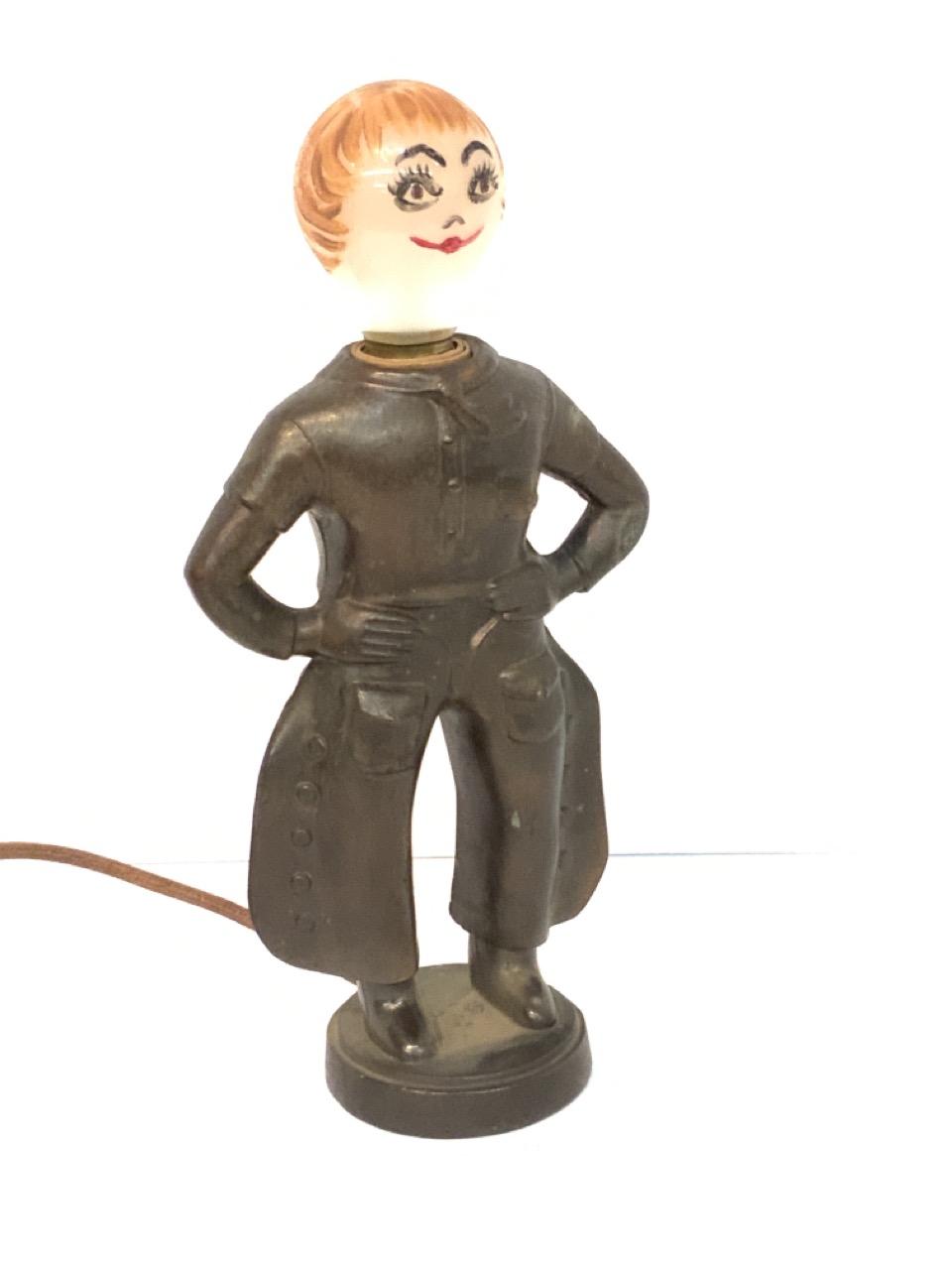 A fun vintage Western themed cowgirl table lamp. Lightbulb in working order paint decorated head. 1940's era.