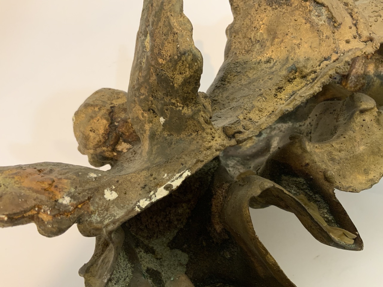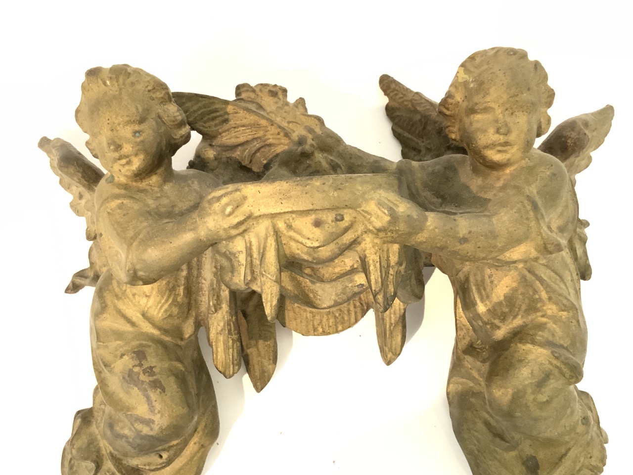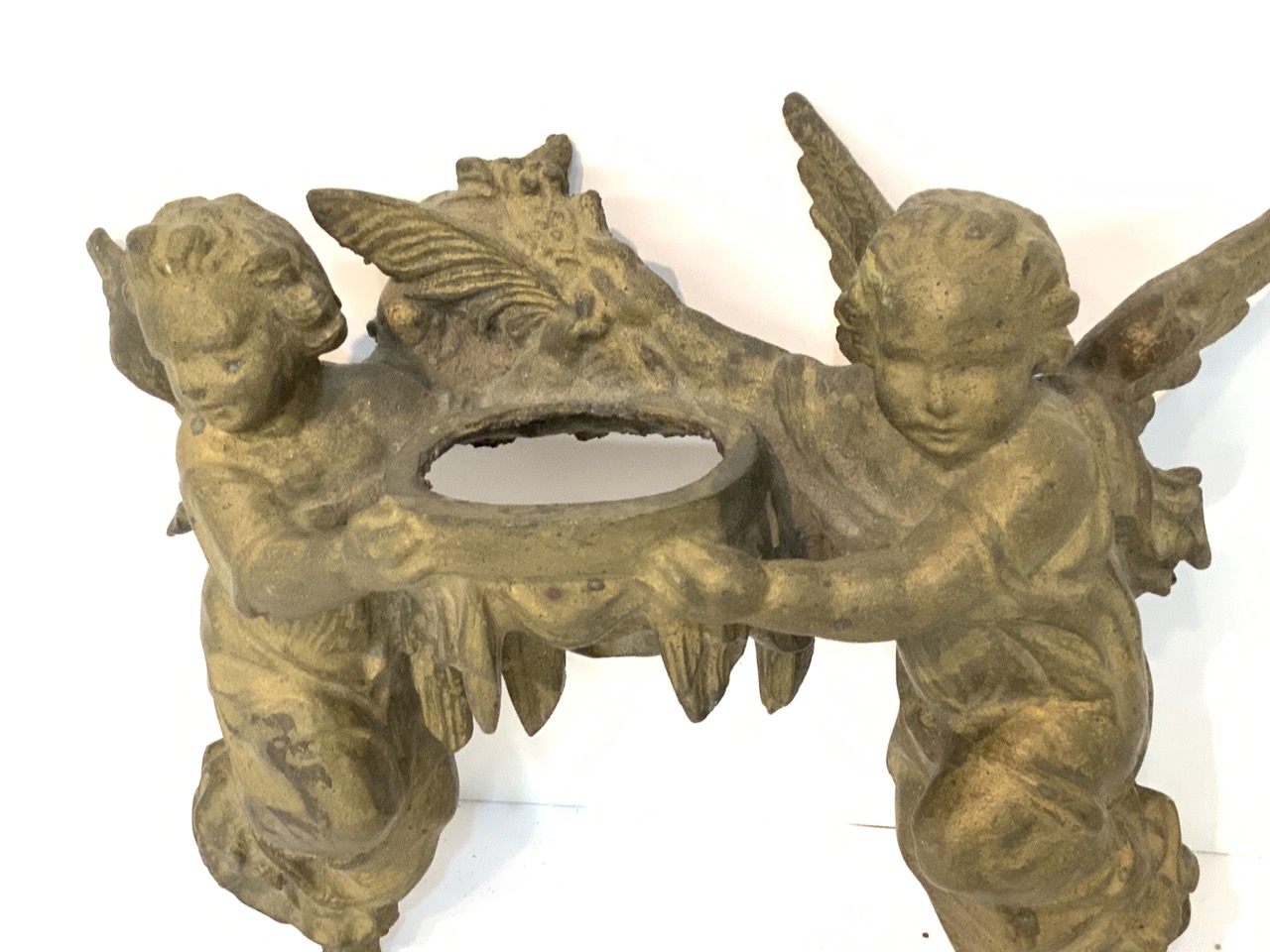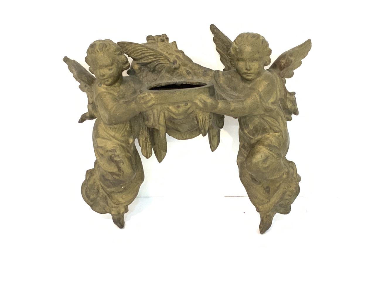 Antique holy water font with angels. Missing well.