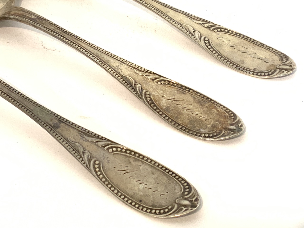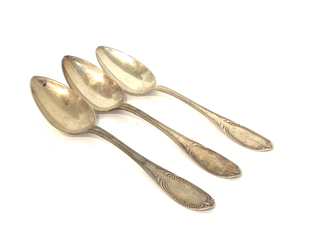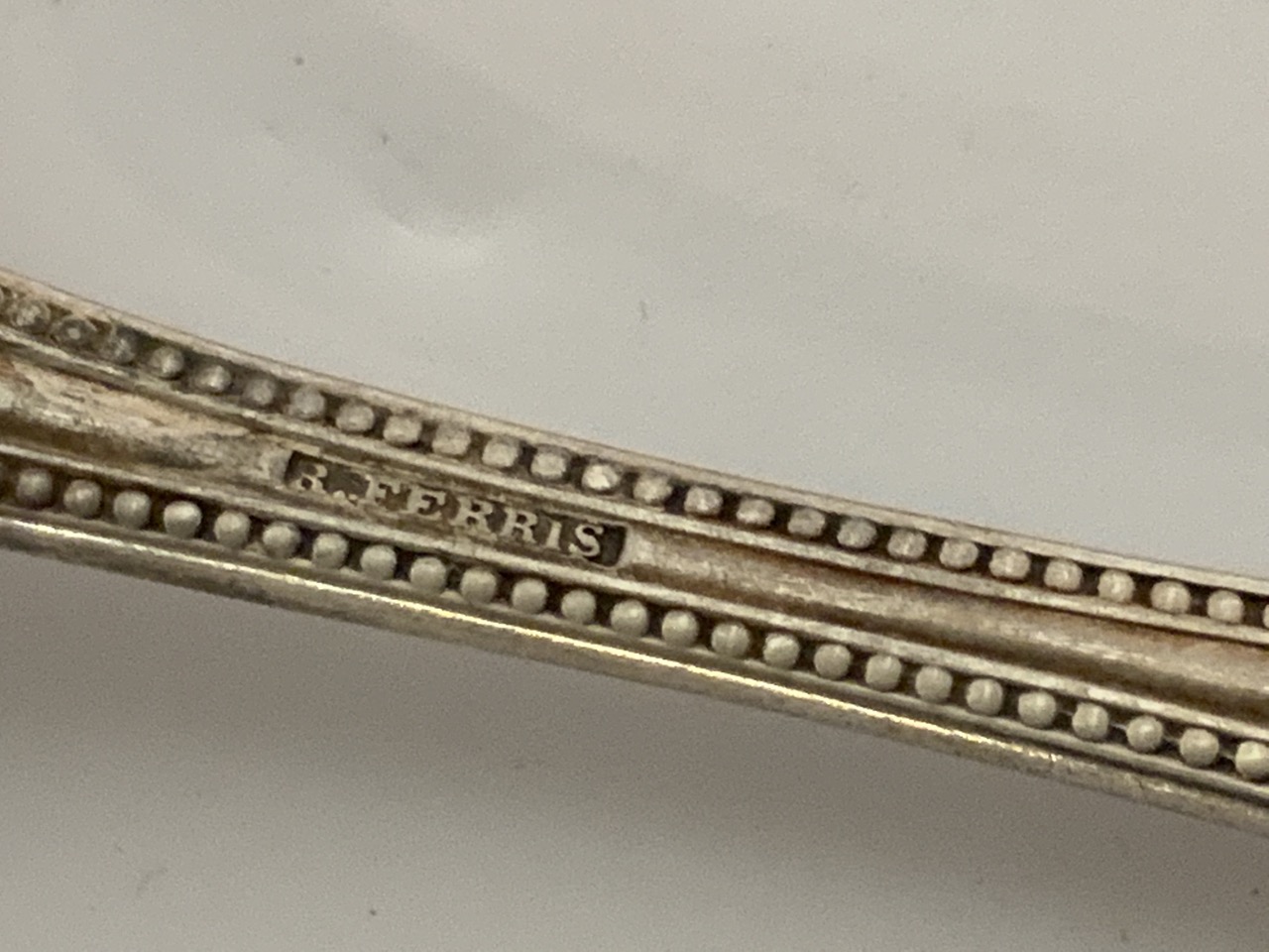 Three American coin silver serving spoons. Mid 19th century signed R. Ferris.