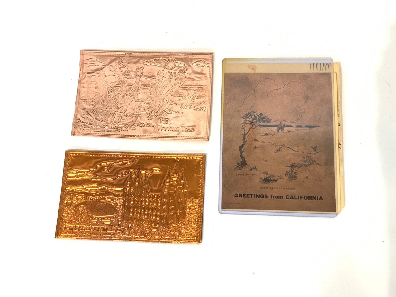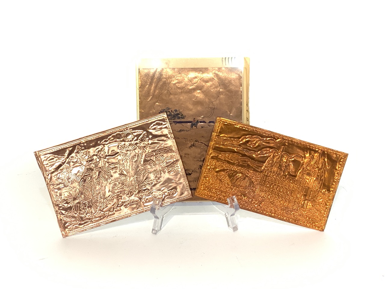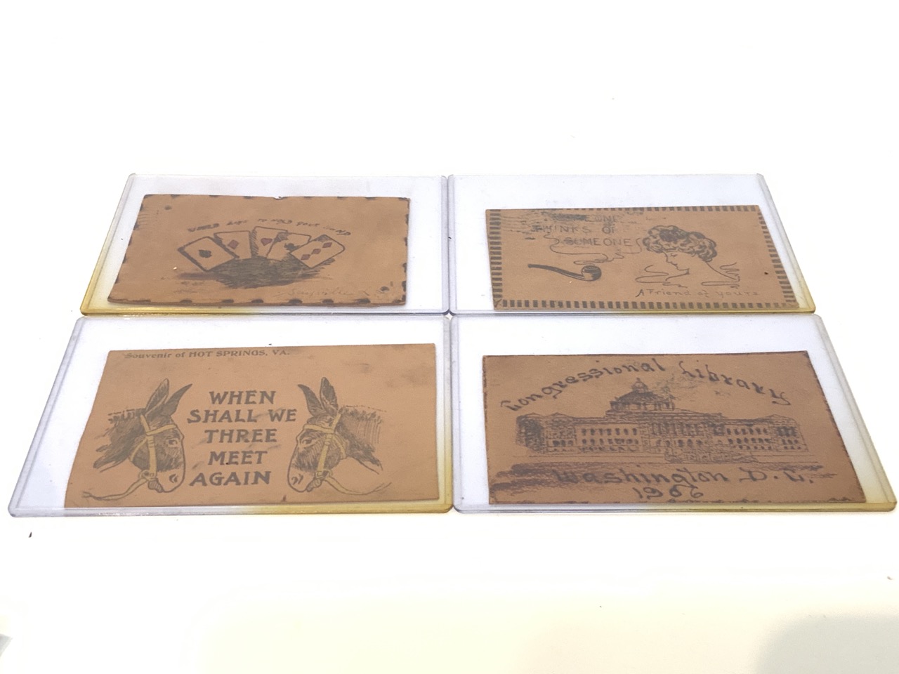 Estate compiled vintage leather and copper postcards. As seen in photograph preview.