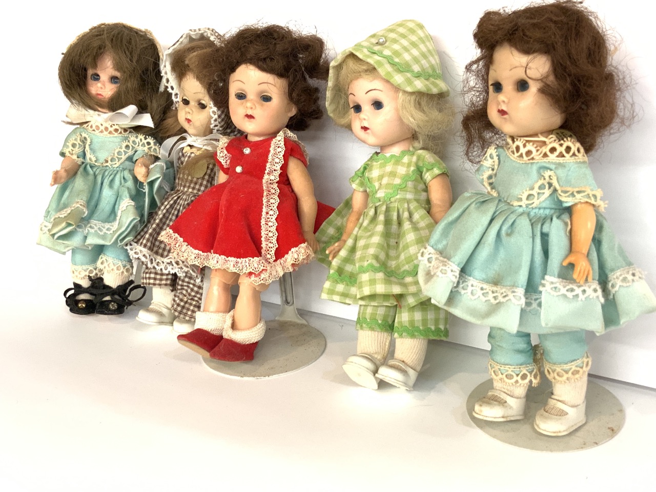 Five (5) vintage Vogue Ginny dolls.