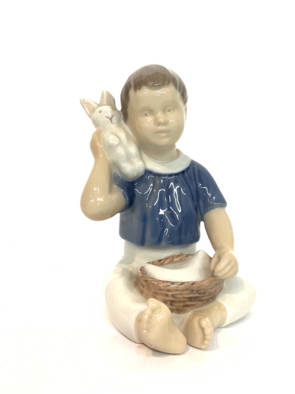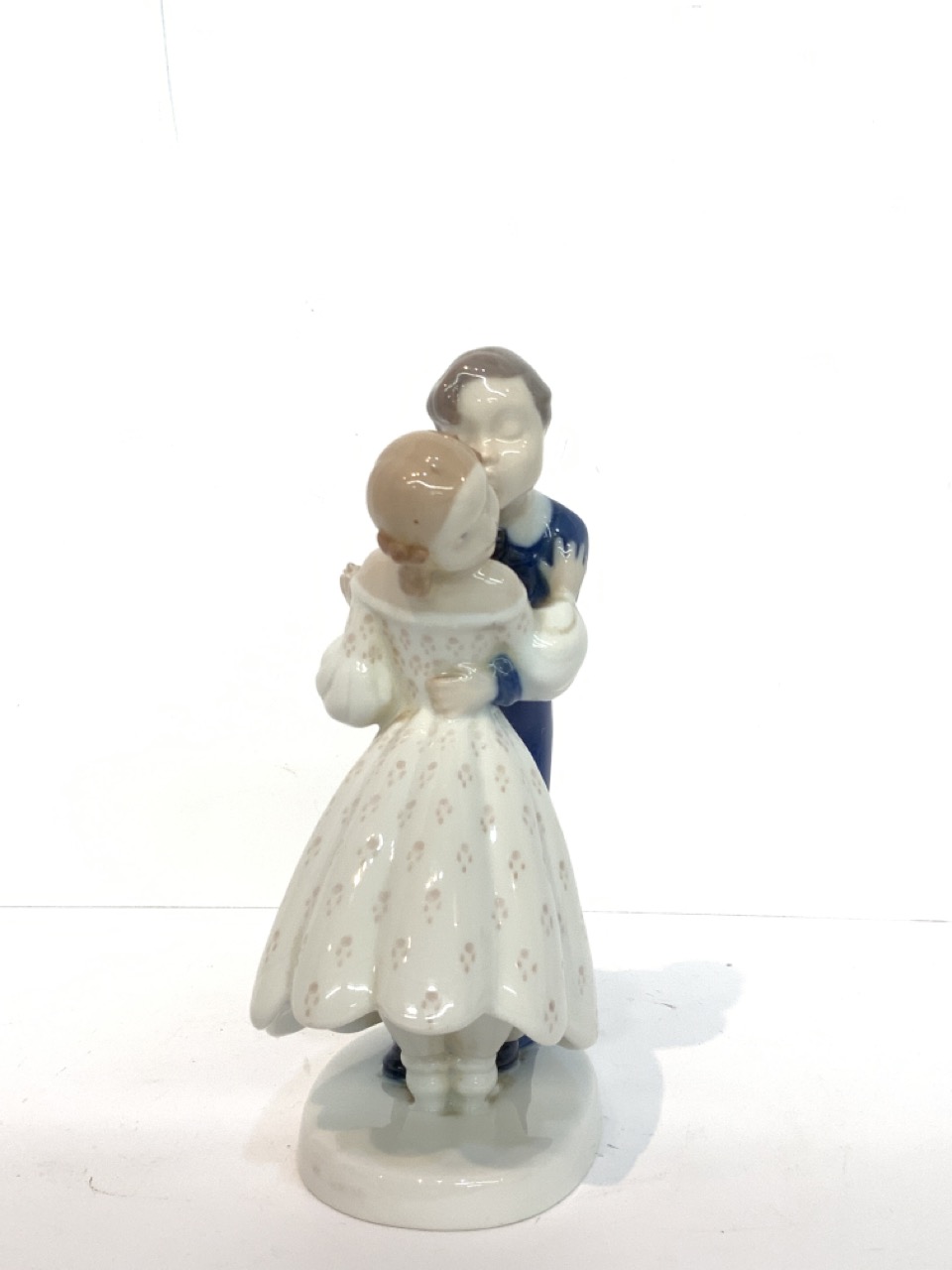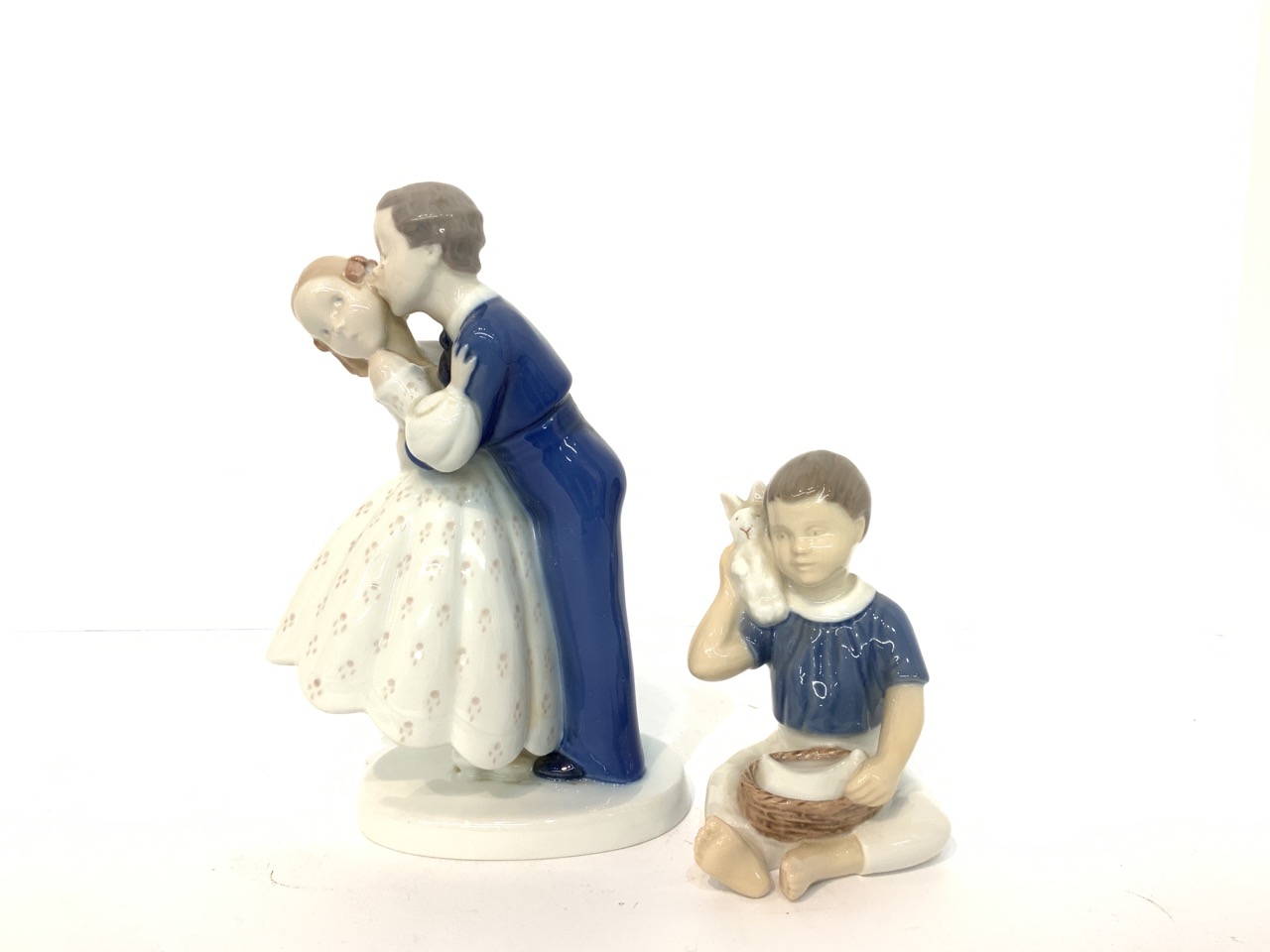 B&G Bing & Grondahl figurines. Two pieces. Kissing Couple and Boy with rabbit.