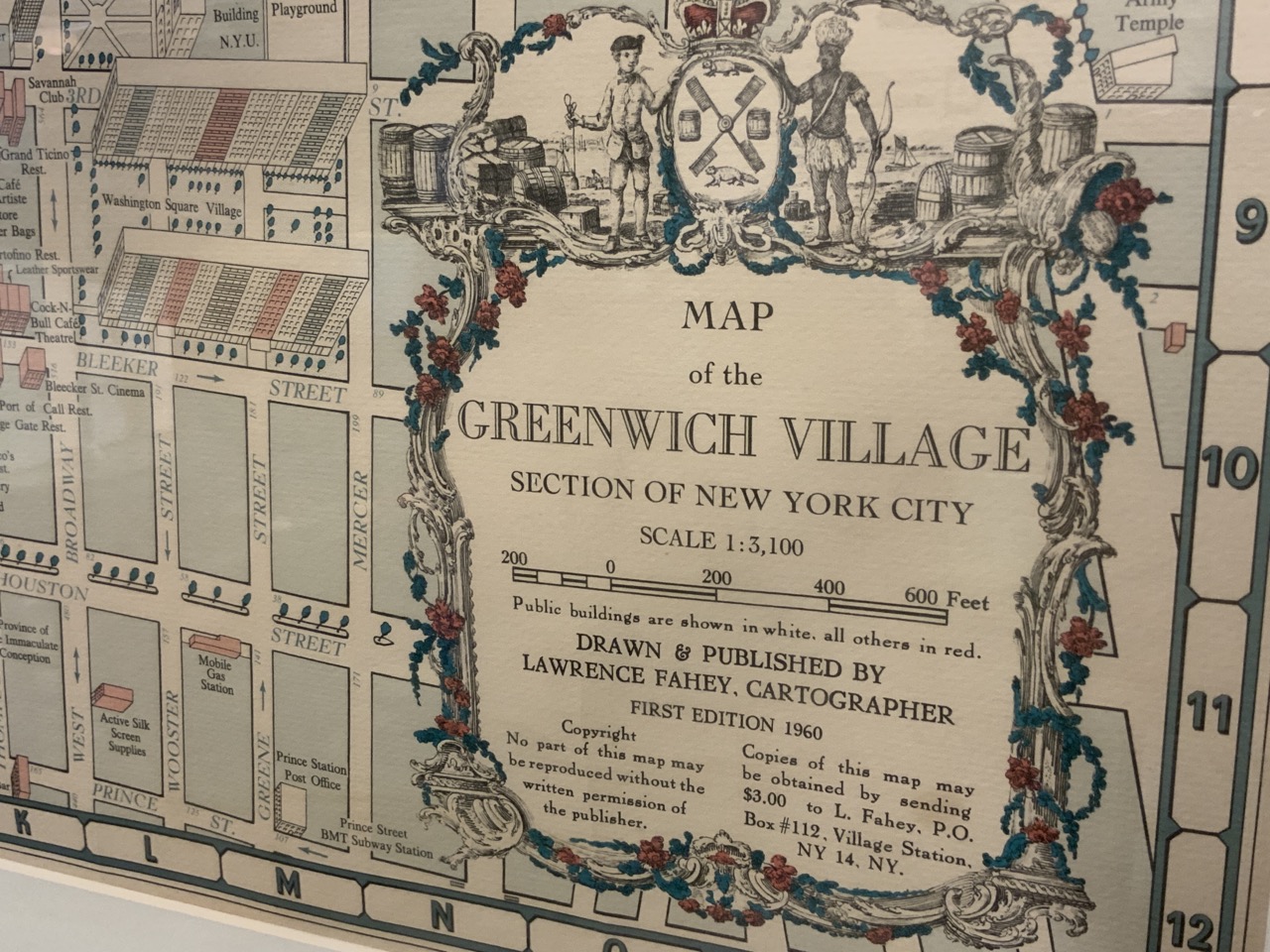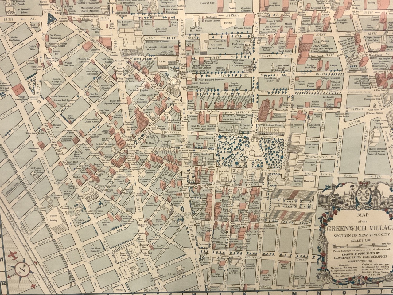 Original 1960 map of Greenwich Village, New York City by Lawrence Fahey. Stated 1st edition.