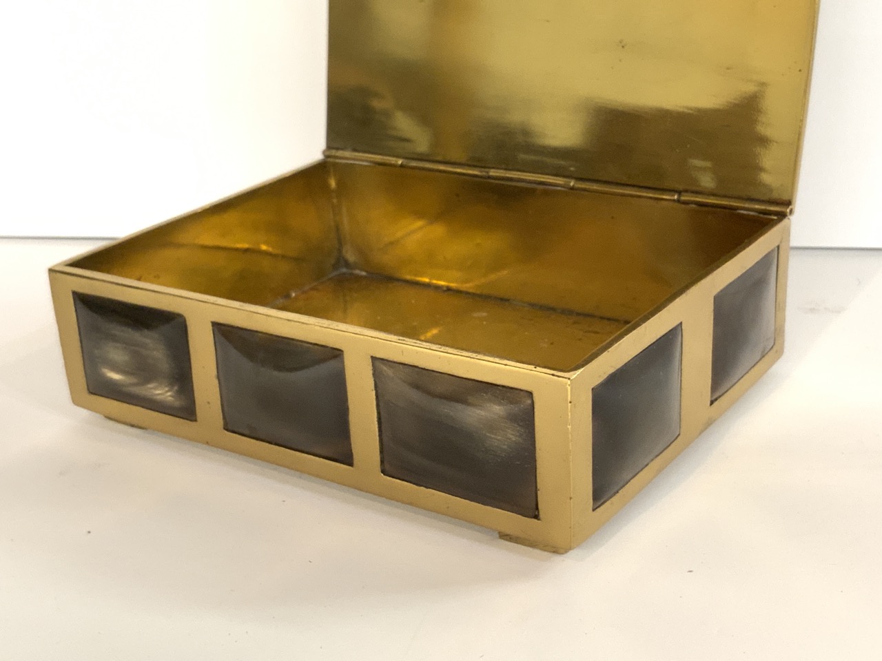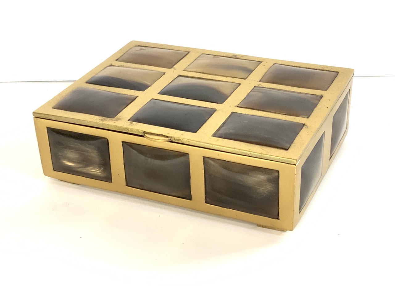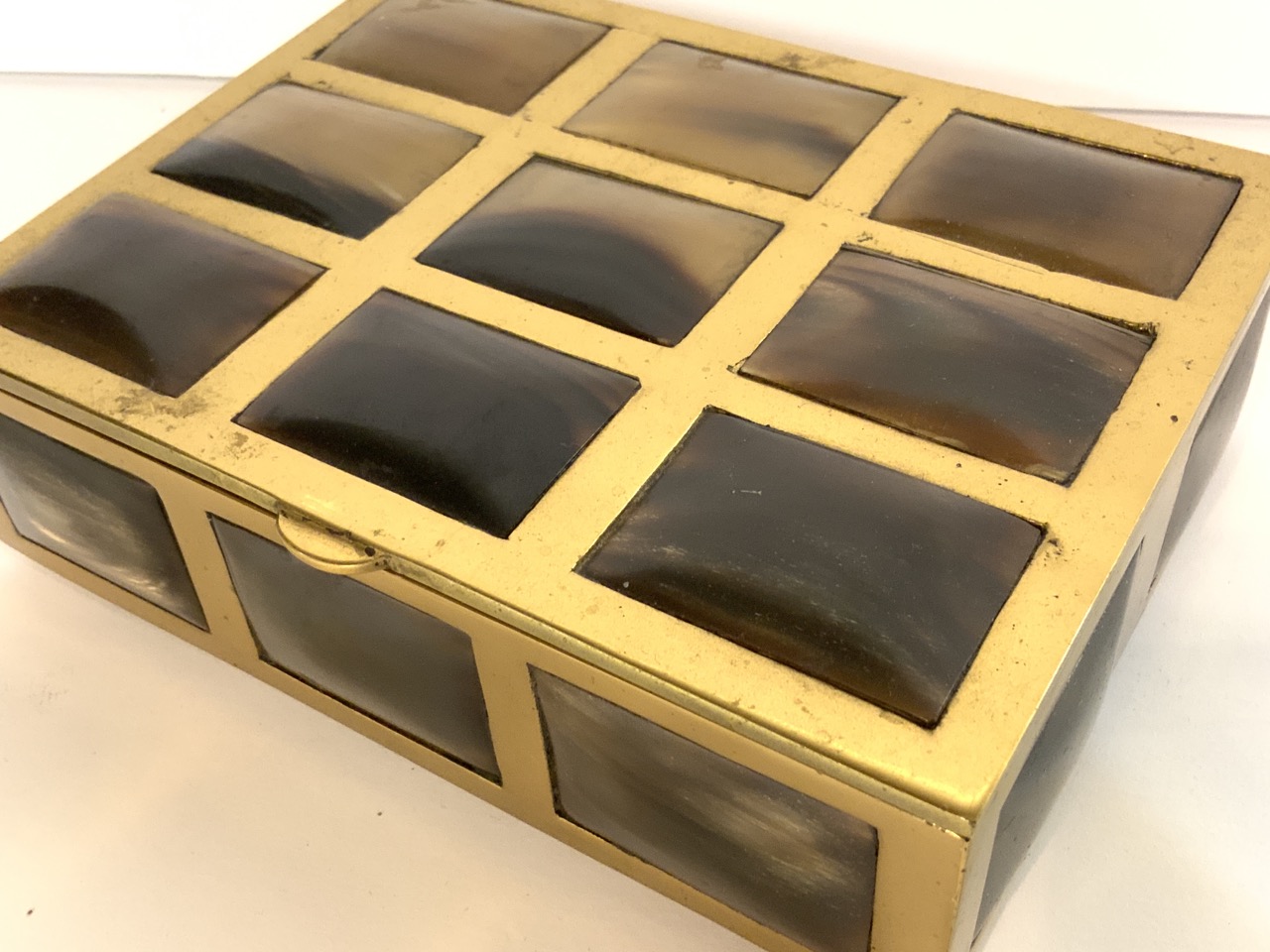 A gentleman's dresser box. Brass with horn panels.