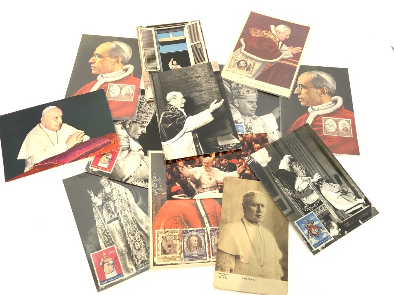 Assorted vintage postcards group. Legends of the sea, Amish, The Popes, Entertainment, Risque cards and more. As seen in photograph preview.