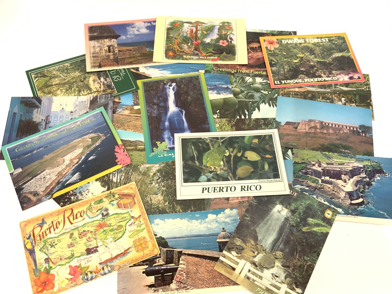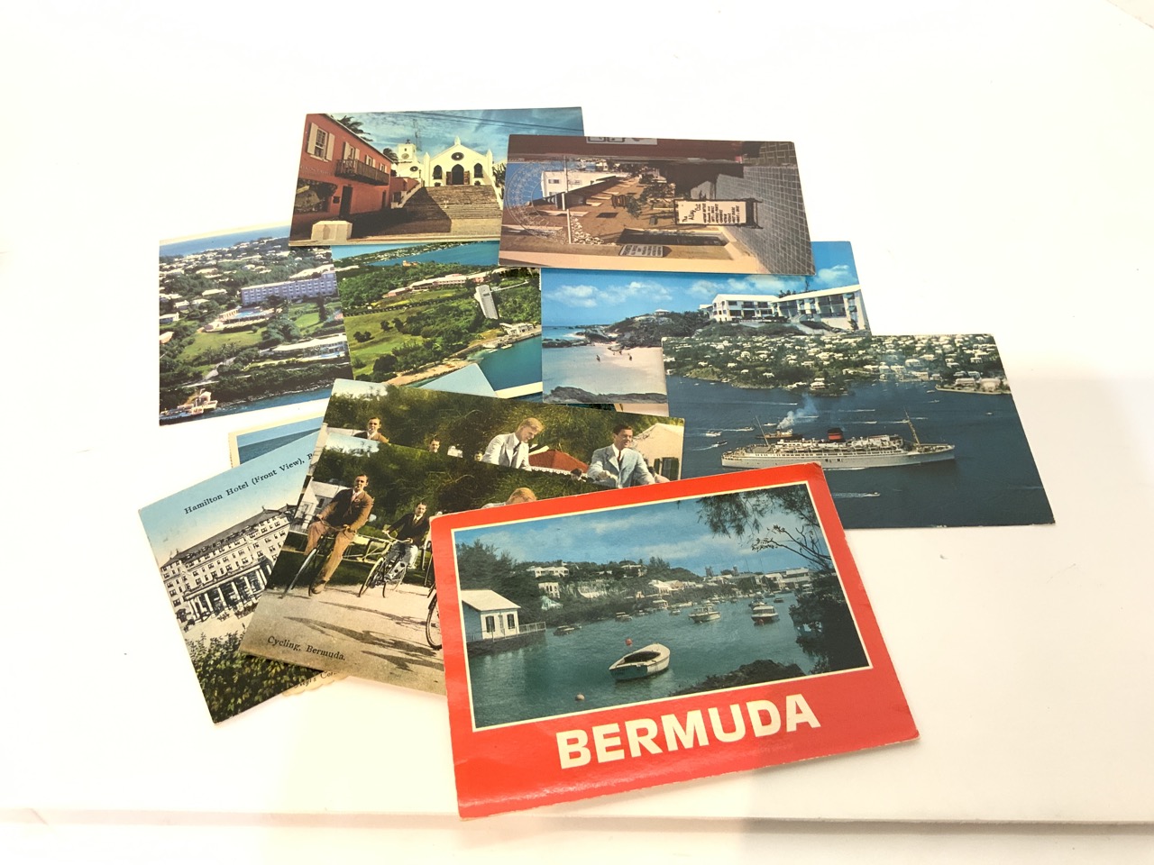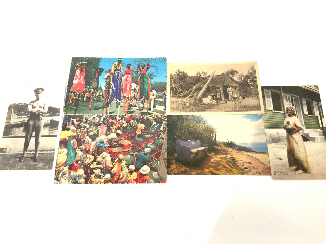A compiled grouping of vintage postcards from Bermuda, Bahamas, Cuba, St. Thomas, Virgin Islands, St. Maarten, Netherlands Antilles, Puerto Rico, Panama and Peru.