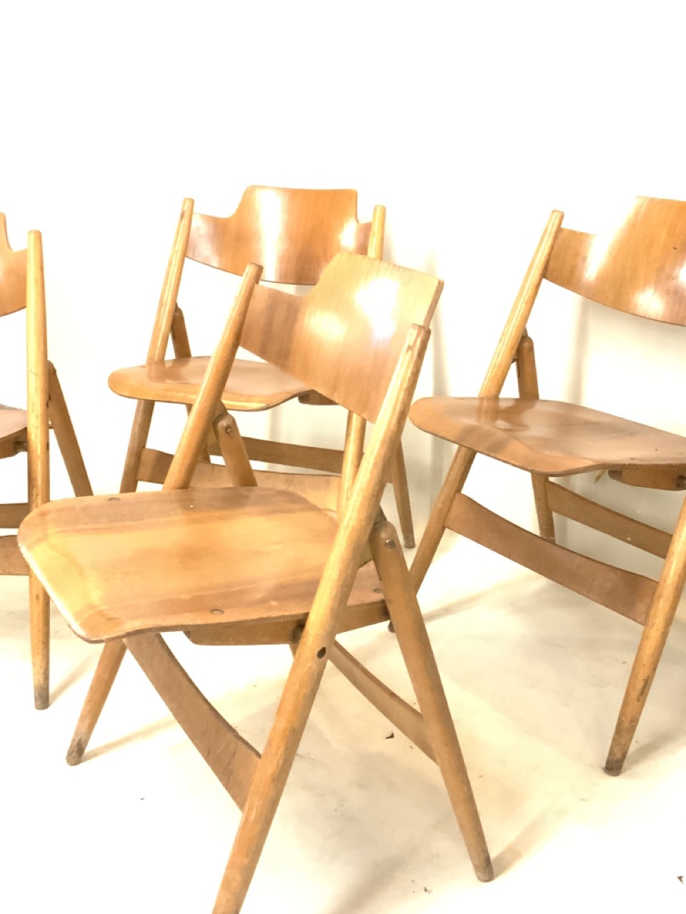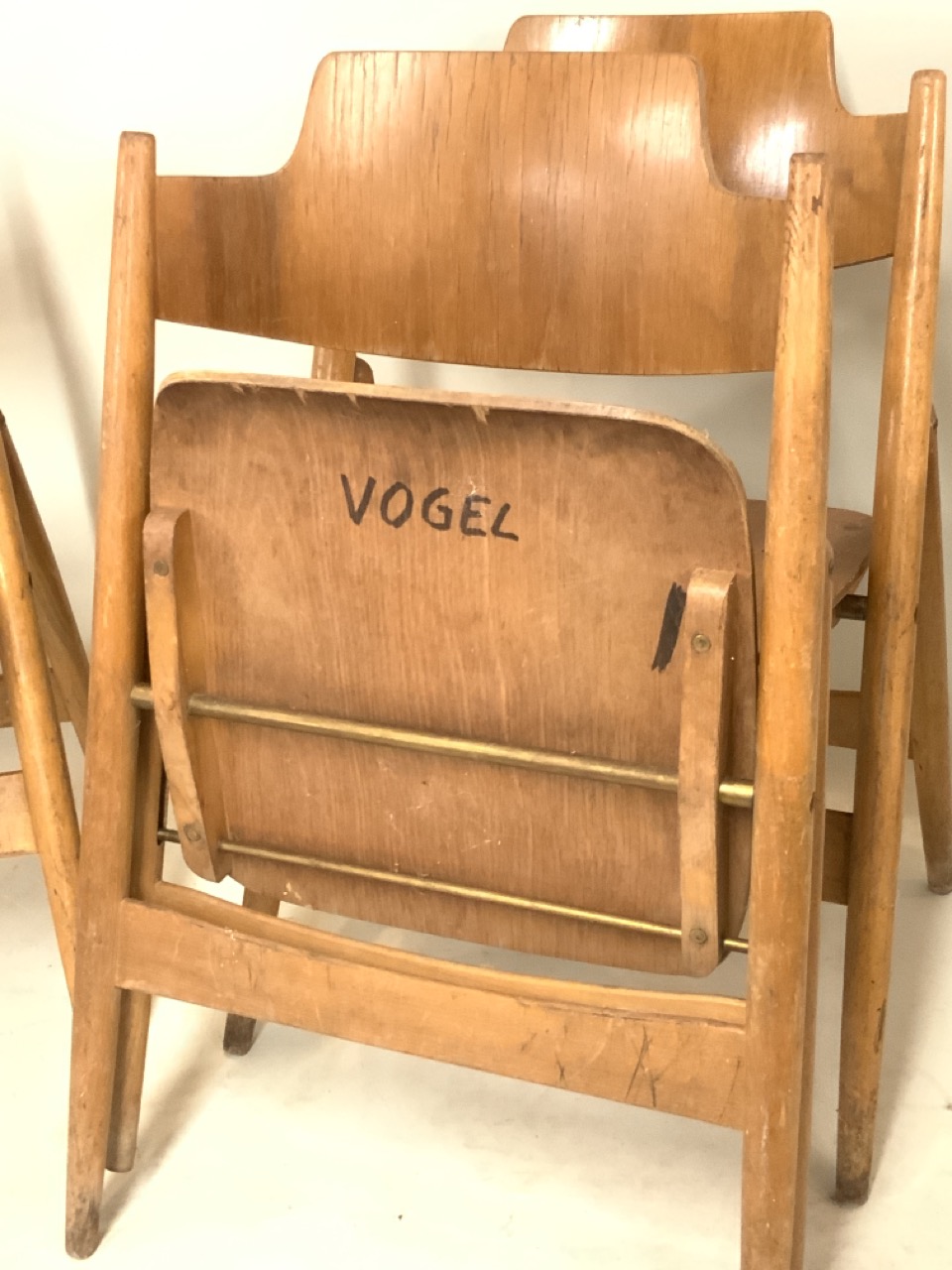 Set of Mid Century Modern design folding chairs. Brass hardware. High quality sturdy design.