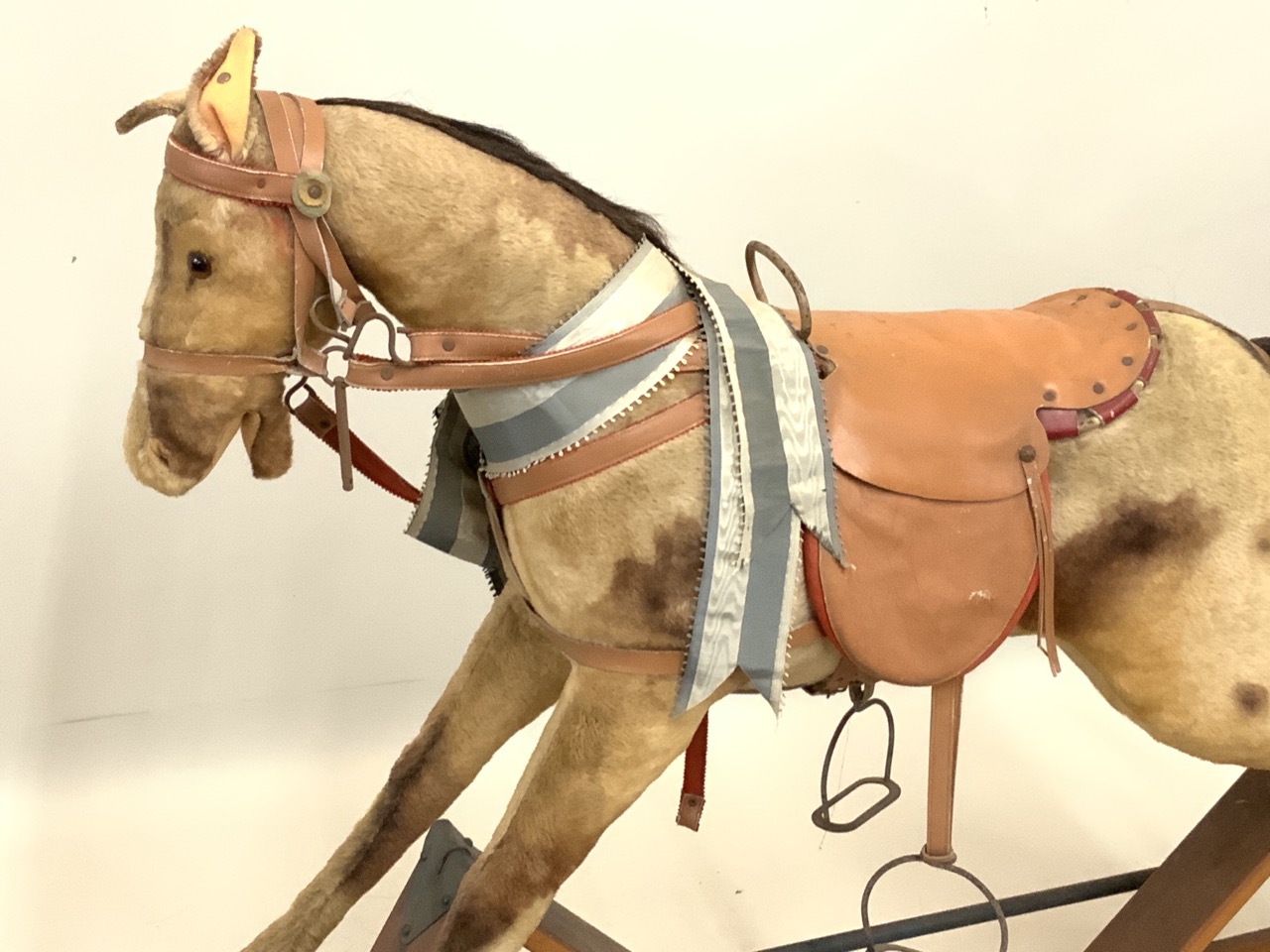 Large Steiff rocking horse toy. Made in Germany. A heavy oversized piece. Steiff button in ear.